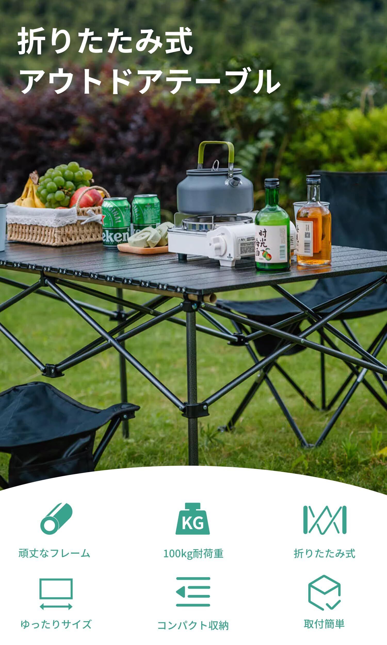 【アウトドアシーンを快適に演出!】Camptimeのアウトドアテーブルは、キャンプやバーベキュー、ハイキング、ピクニックなどの様々なシーンで活躍する理想的なアイテムです。耐荷重100kgの強靭な作りで、安心して様々な食材や器具を置くことができます。
