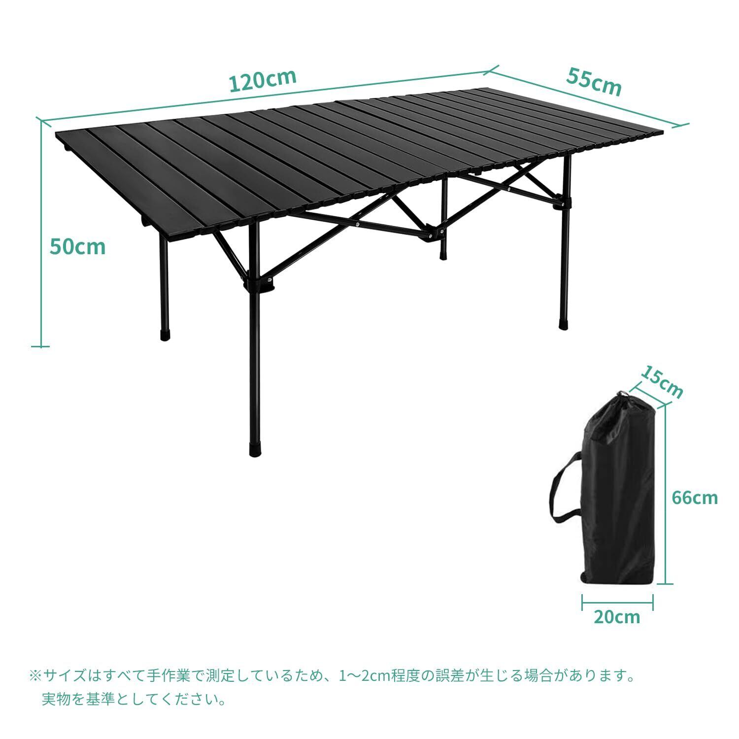 Camptime アウトドア テーブル 折りたたみ 軽量 コンパクト 耐荷重100kg 折り畳みテーブル ロールテーブル キャンプ バーベキュー ハイキング ピクニック 収納バッグ付き 120cm ブラック