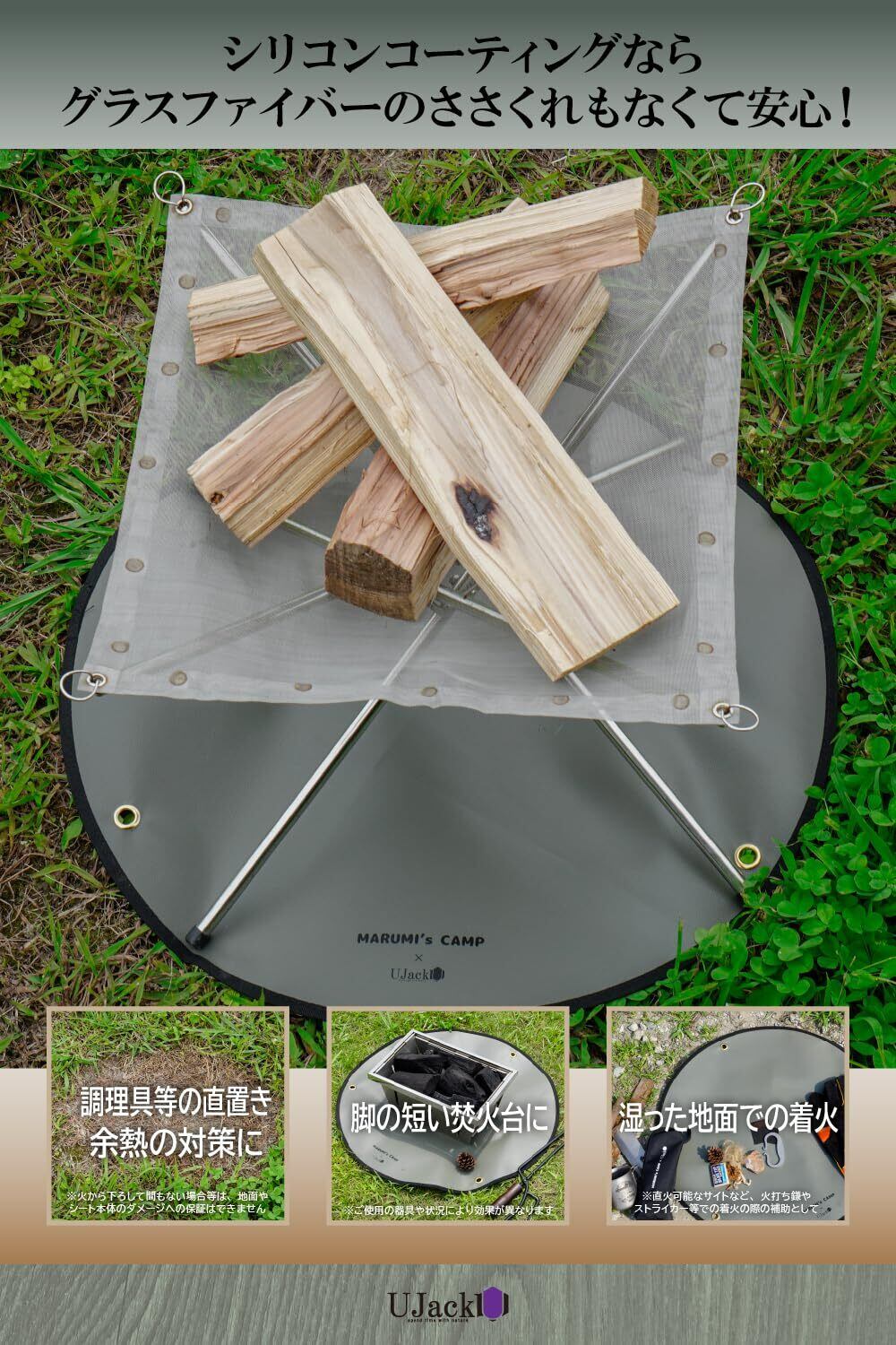 UJack(ユージャック) 焚き火シート 丸形 まるみを帯びた焚き火シート 公式アンバサダーまるみのキャンプコラボ