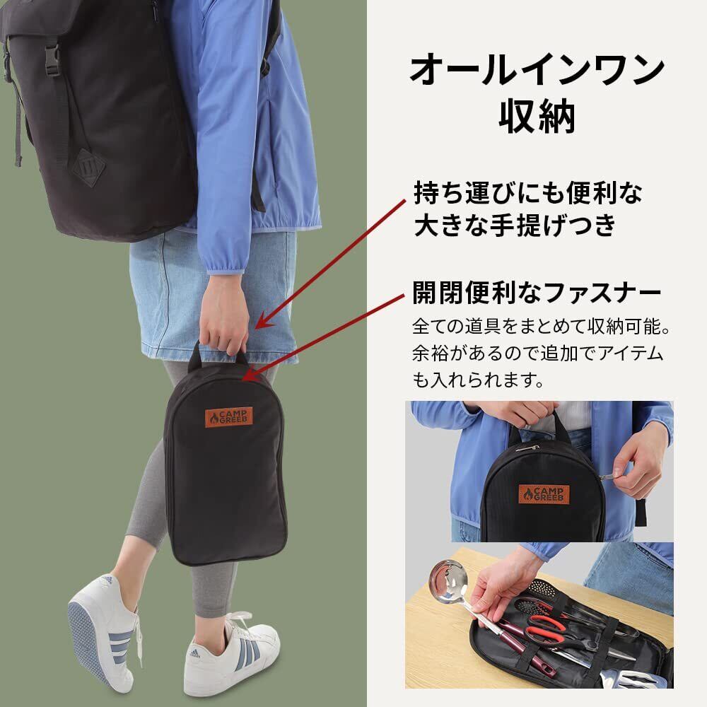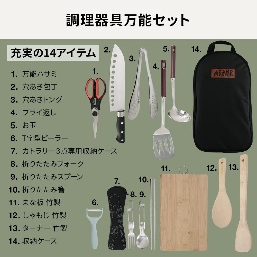 キャンプグリーブ 調理器具 セット 14点 キャンプ アウトドア クッキングツールセット キッチンツール (黒)