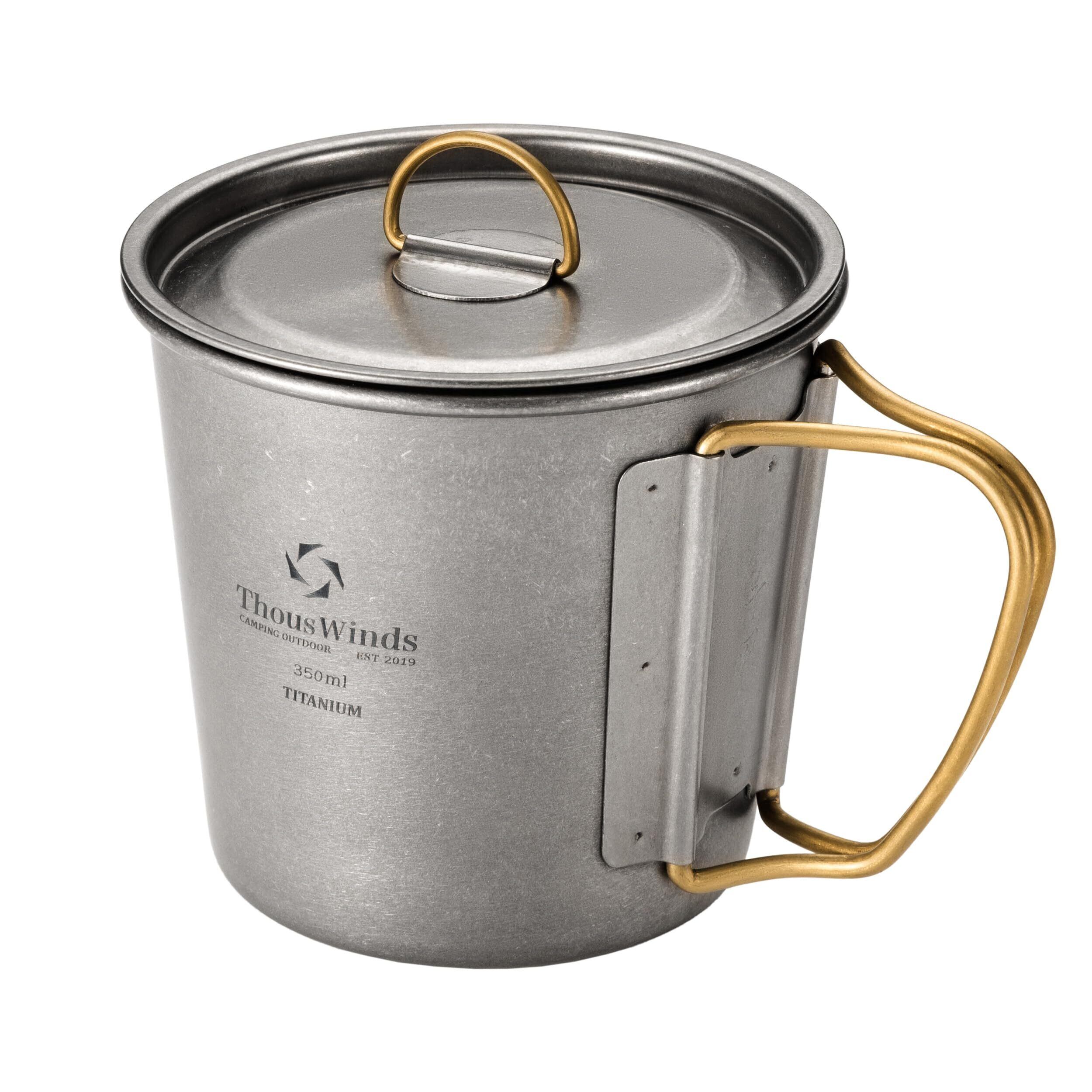 Thous Winds チタンマグカップ シングルカップ アウトドアマグカップ チタン製 軽量 頑丈 直火 おしゃれ ソロキャンプ キャンピング メッシュ収納袋付き