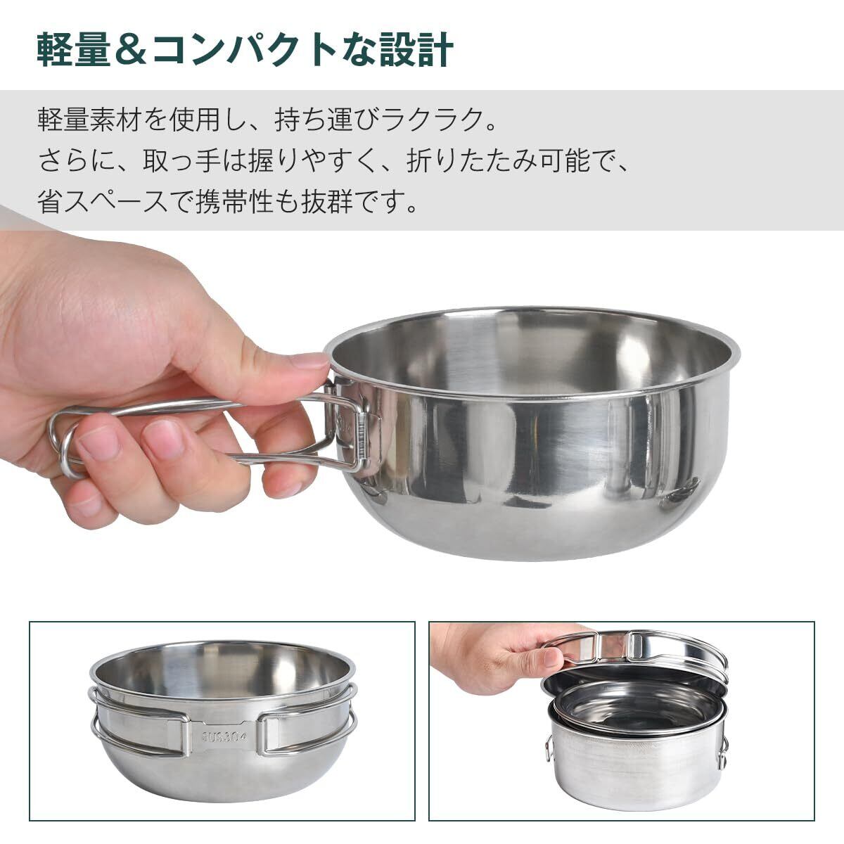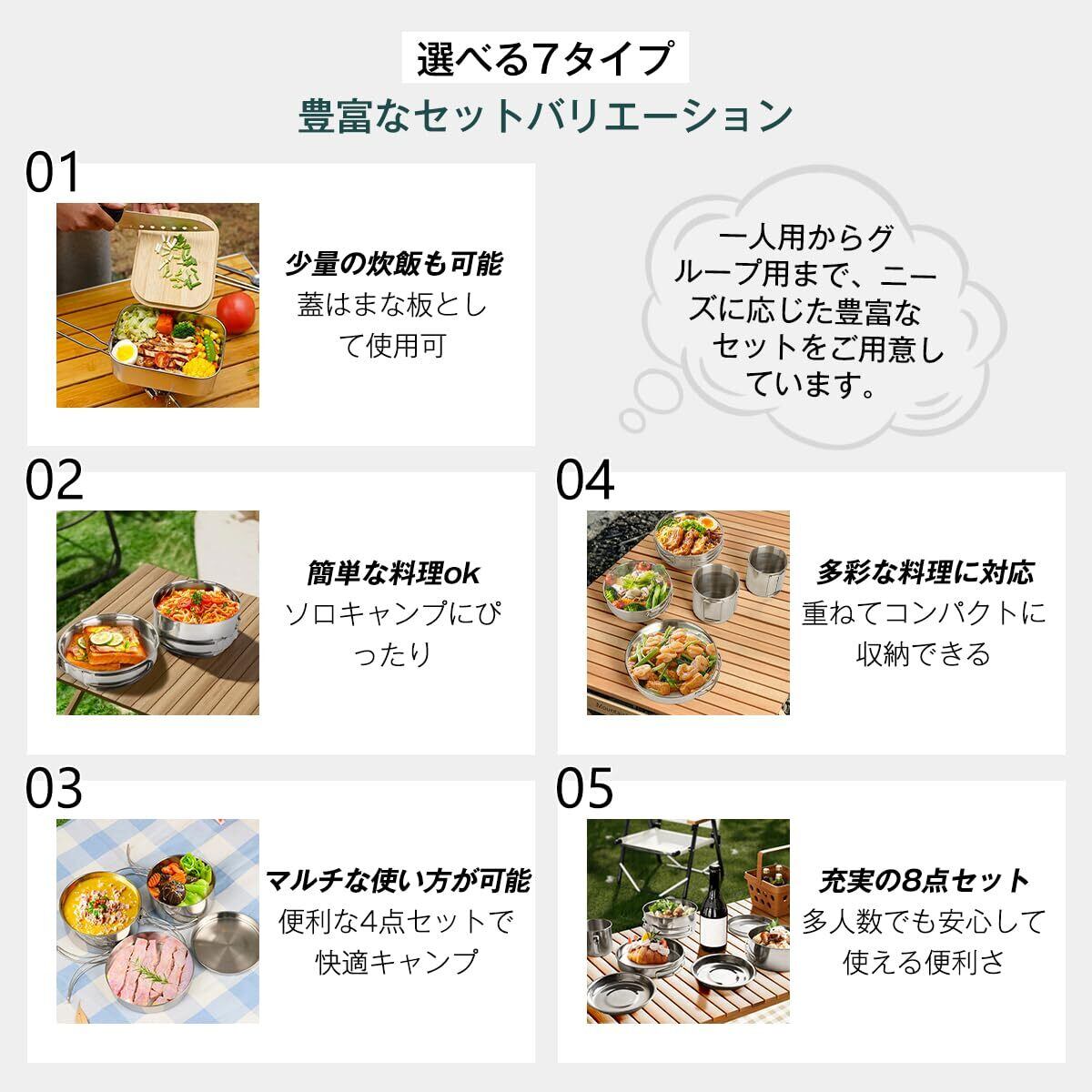 【304ステンレス製、直火対応で耐久性抜群】SOHAPI クッカーセットは、304ステンレス製で作られており、直火対応のため、キャンプやバーベキューでの使用に最適です。ステンレス製なので、非常に高い耐久性を持ち、火にかけても変形や錆びることなく、長く使える信頼性の高いアイテムです。また、軽量で持ち運びも便利、アウトドア活動に欠かせないアイテムとなります。