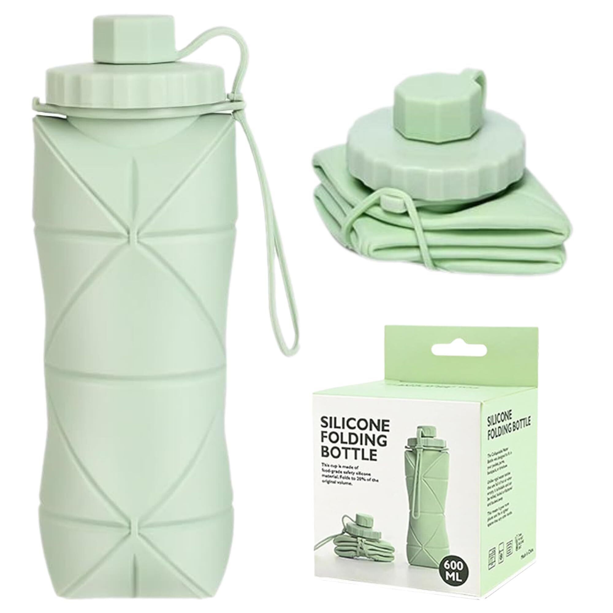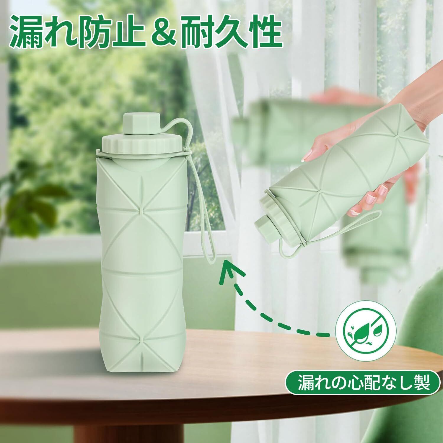 折りたたみ水筒 ウォーターボトル 子供 洗いやすい water bottle 大容量 携帯用 耐冷耐熱 漏れ防止 スポーツドリンク対応 軽量 スポーツボトル ランニング 登山 シリコンボト ペッソフトボト 折りたたみ たためる 折り畳み水筒 折り畳み式シリコン (600mlグリーン)