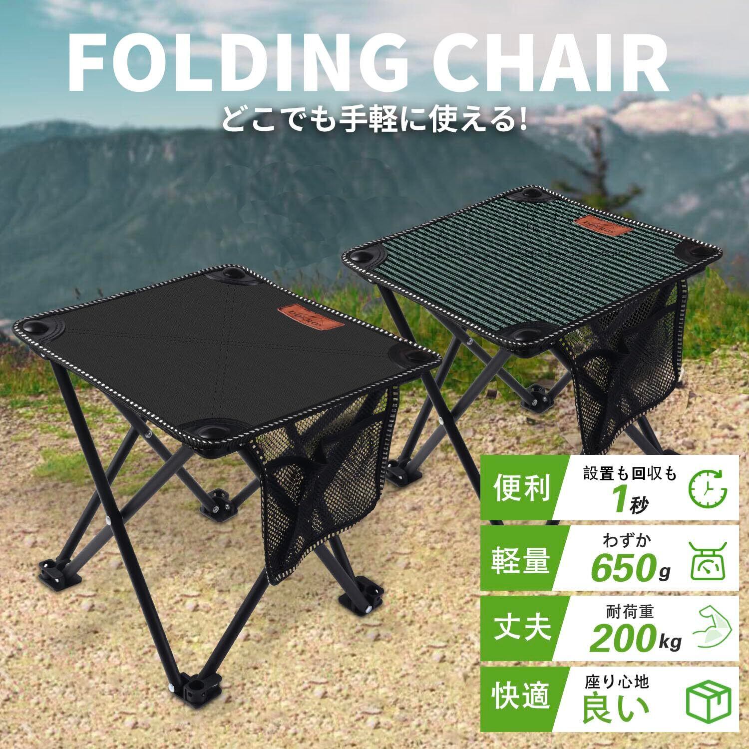 Dorros 折りたたみ椅子 アウトドア チェア 軽量 コンパクト 耐荷重200kg 600Dオックスフォード素材 キャンプ椅子 キャンプ チェア 釣り 花火 運動会 収納袋付き