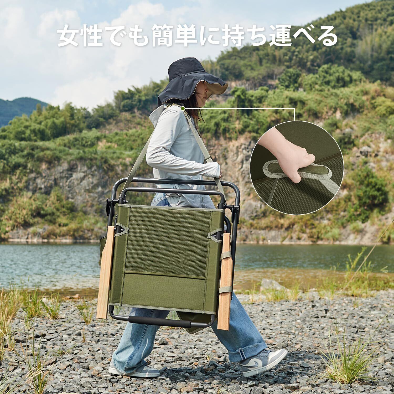 TIMBER RIDGE アウトドアチェア 折りたたみ椅子 3段リクライニング 焚き火チェア 難燃 ローチェア 携帯椅子 耐荷重150kg 木制肘掛 キャンプ 屋外 バーベキュー