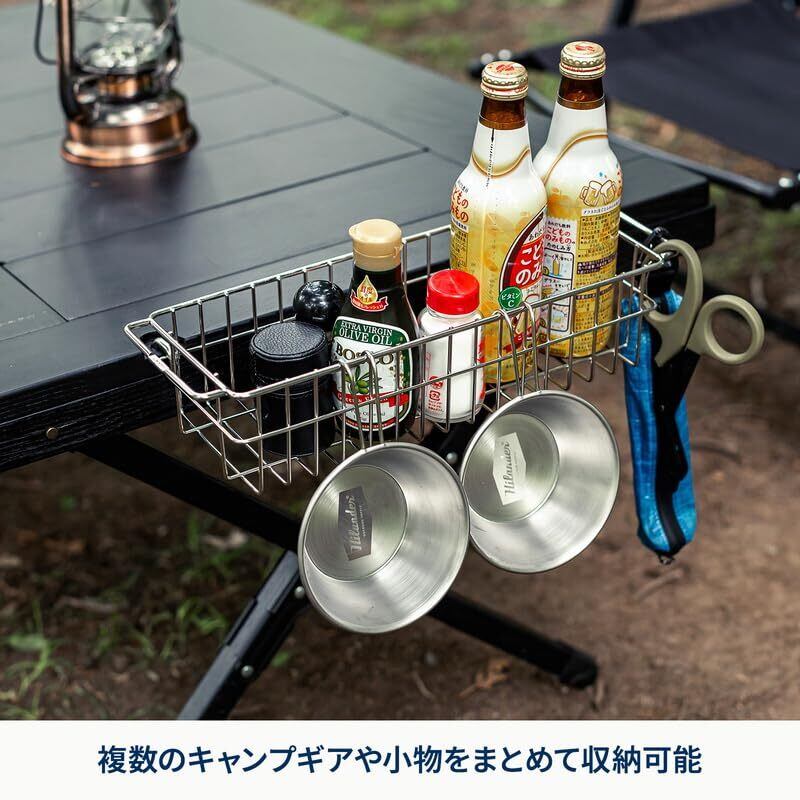 【商品詳細】 ●素材:ステンレス(フレーム) ●サイズ:約W35.6×H8×D14cm ●重量:約370g ●ハイランダー製品の対応品番:シェフテーブルLIGHT(HCJ-014~HCJ-021)、LIT TABLE(HCD-002~HCD-003) ●※収納袋は付属しておりません ●※本製品の最大積載量は約3kgです。 ●※最大積載量以上に中に物を入れた状態でテーブルに装着した場合、テーブル本体のパーツが浮き、安定性に欠ける恐れがございます。