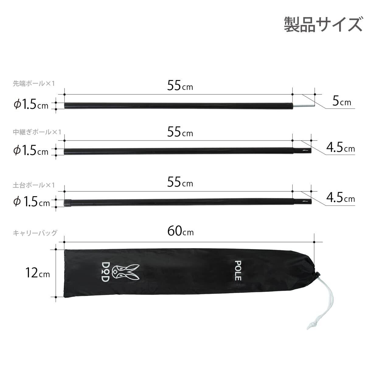 DOD(ディーオーディー) テント タープポール 2本セット ペグ&ロープ&収納袋付