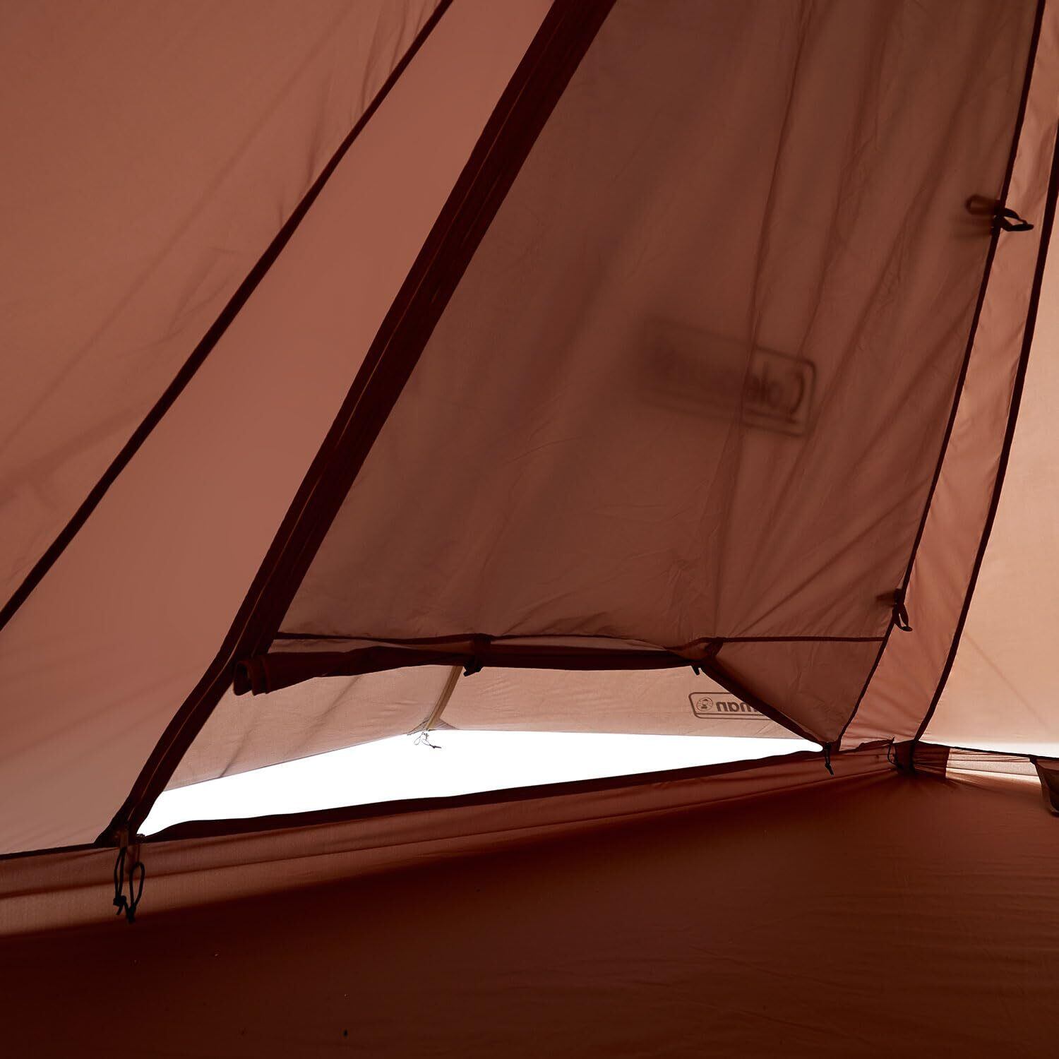 リサイクルポリエステルを使用した、コンパクトサイズのティピー型テント。インナーテントの奥行が230㎝あるので2人使用時でもゆったりと過ごすことができます。