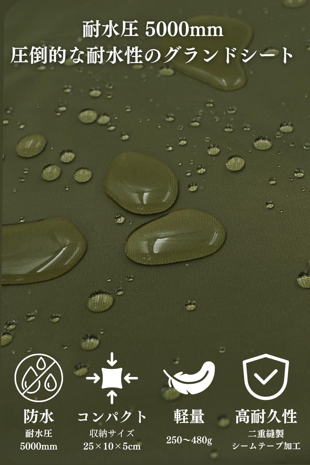 【仕様】材質:210Dポリエステルオックス;耐水圧:5000mm;グランドシート以外にもレジャー用のシートとしても、緊急時用のタープ(天幕)、設営や撤収時の荷物置き場、様々なシーンで大活躍なアイテムです。