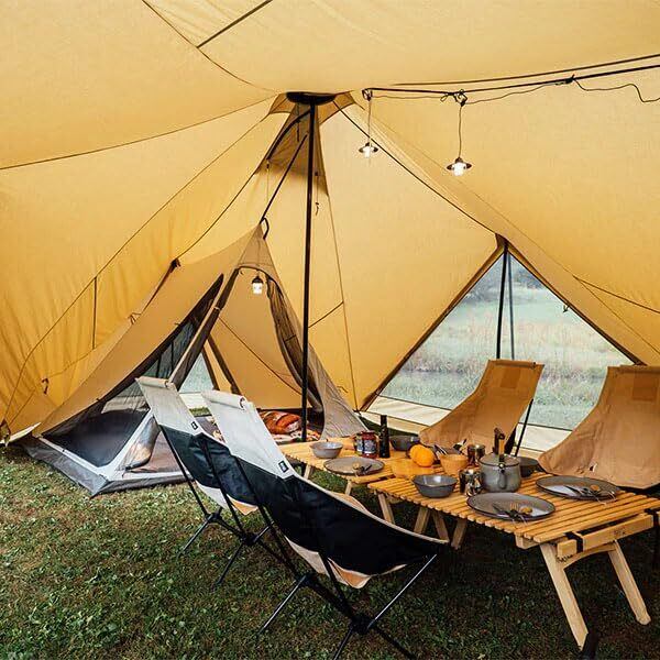 省スペース設計でありながら、サブポールを用いることでデットスペースを無くし、空間を最大限に確保した大型シェルター