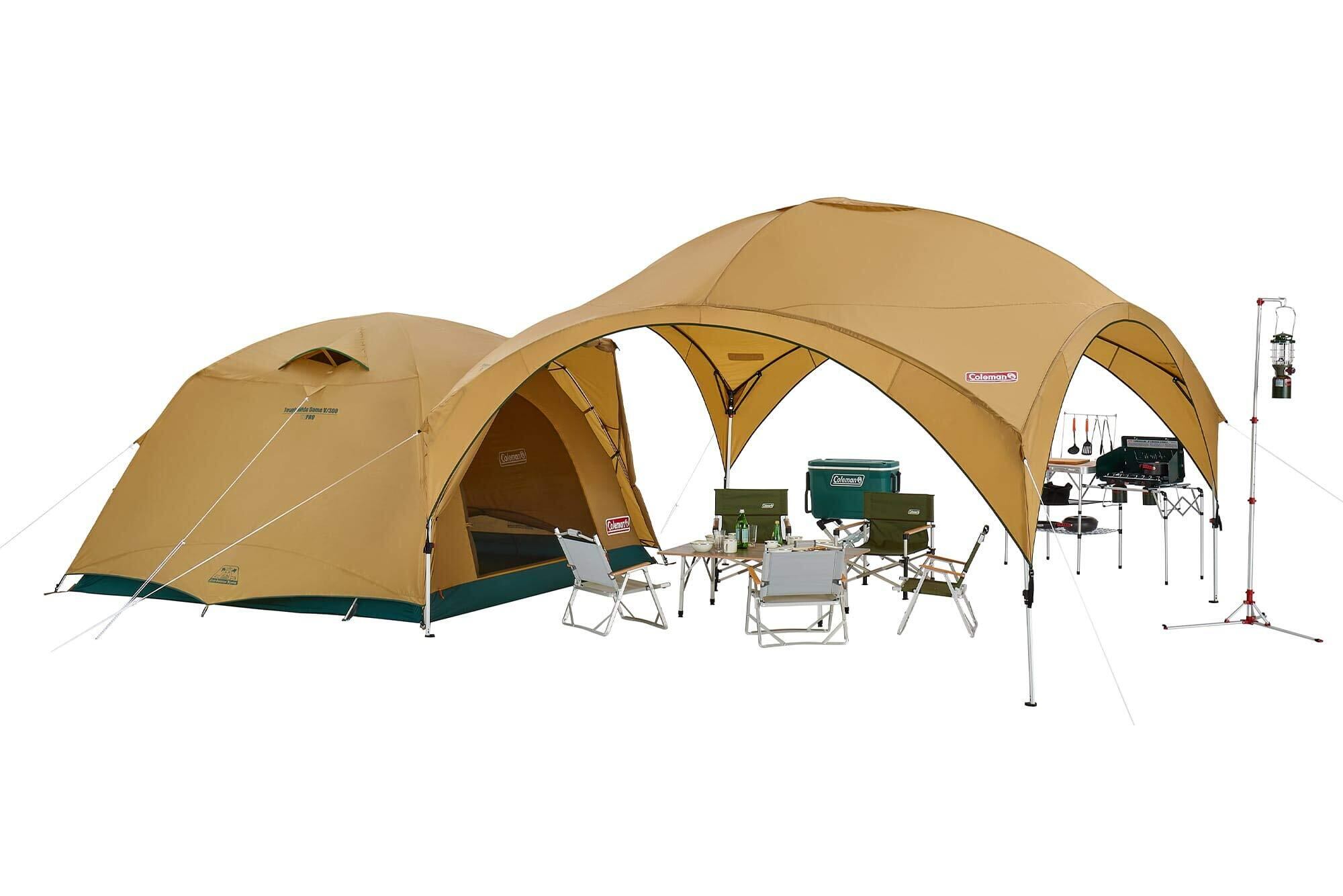 【キャンプでも】テントと組み合わせて使用することで快適なリビング空間をつくることができます。