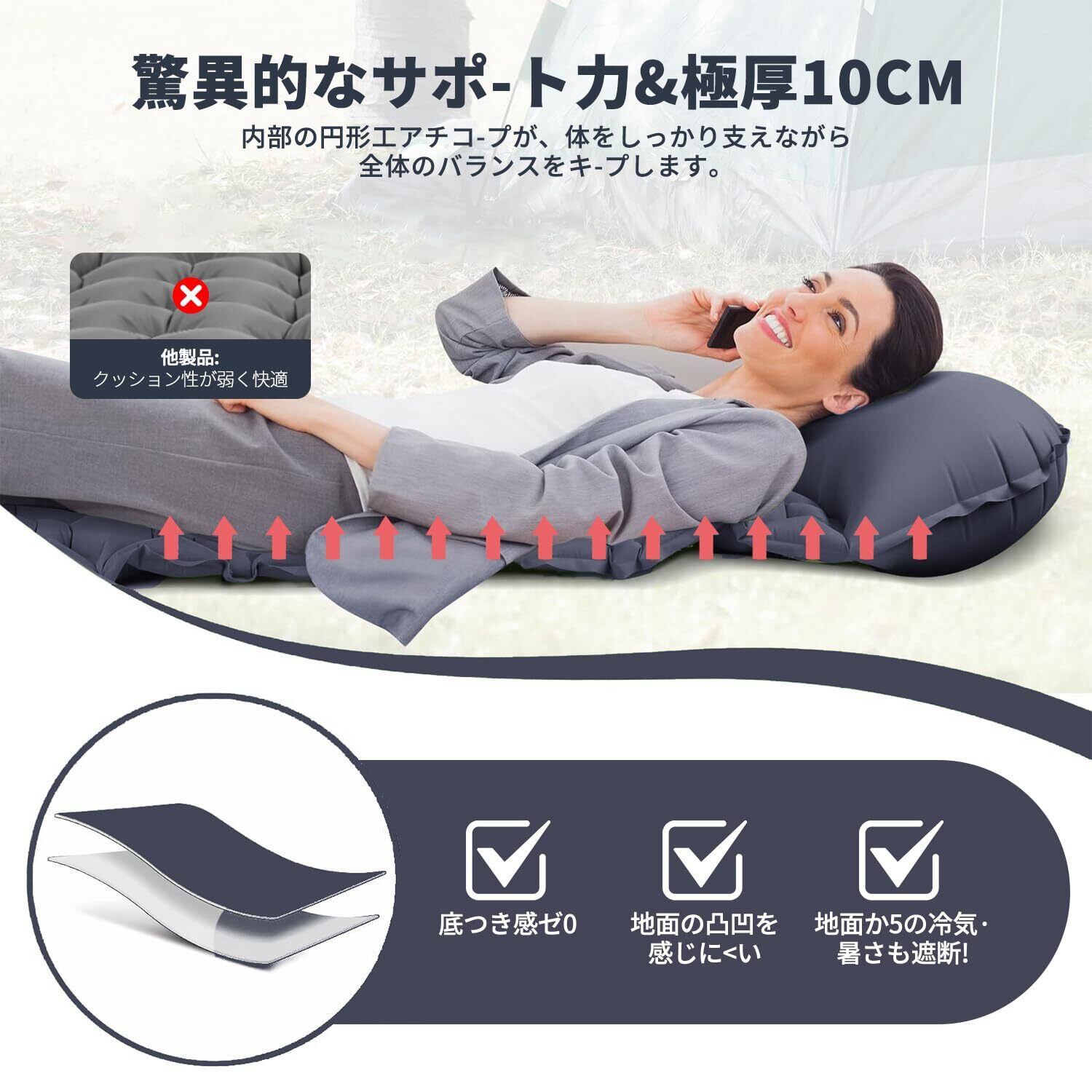 エアーマット キャンプ マット 【足踏み式・枕付き・11cm厚さ】無限連結可能 枕付き エアマット キャンプ 車中泊 防災 軽量 コンパクト 軽量600g 防水防潮 持ち運び便利 キャンプ用品