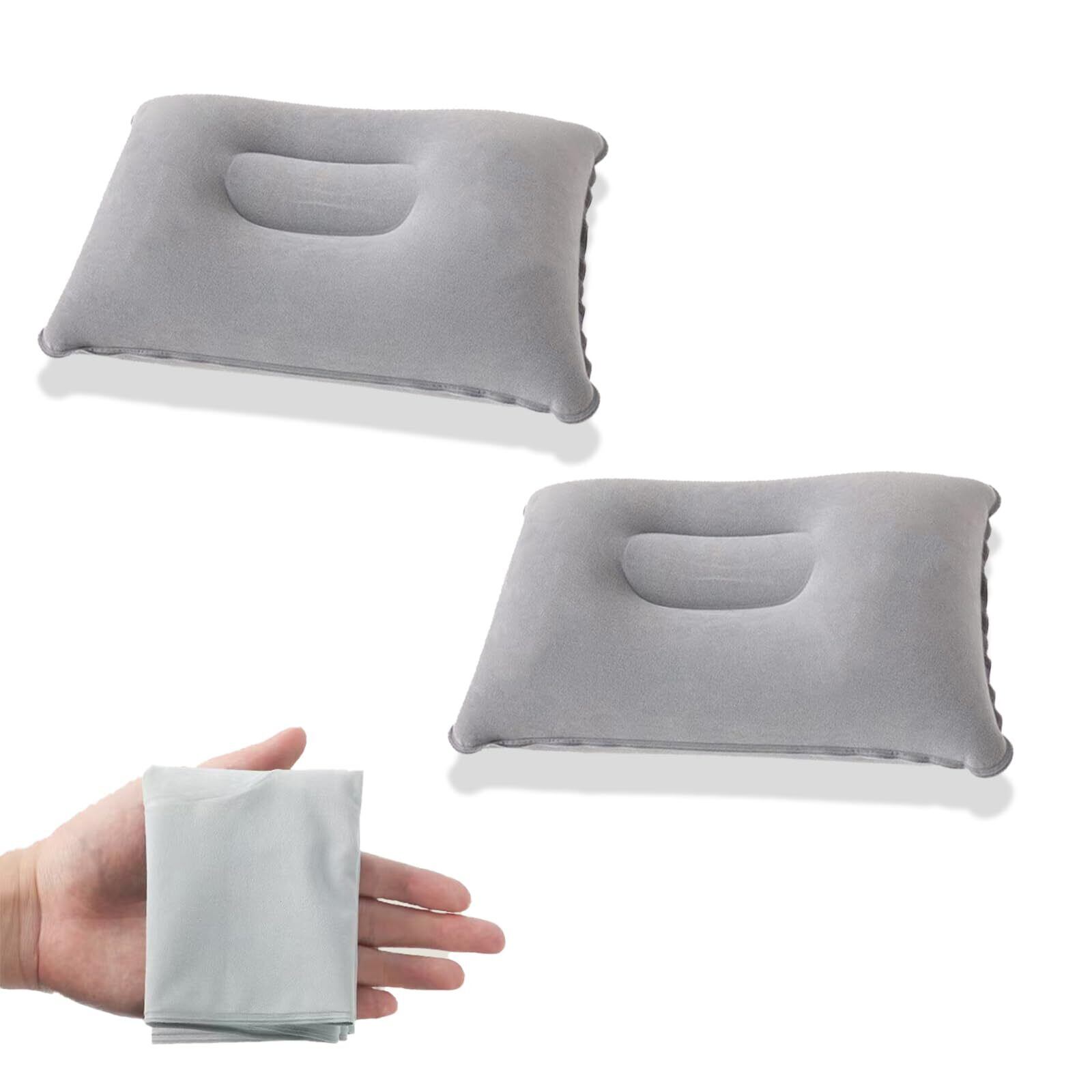 ポータブル 登山 旅行 飛行機 キャンプ 枕 旅行用枕 アウトドア枕 携帯 エアー枕 屋外 用エアピロー 2個セット 22*34cm (グレー)
