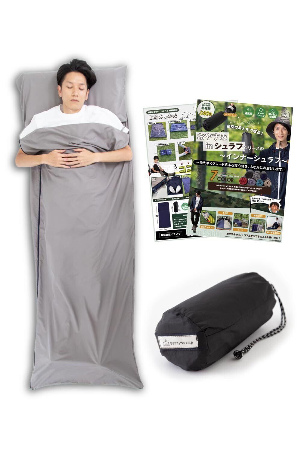 【プロ登山家との共同開発】 インナーシュラフ (超軽量340g!従来品より55gも軽い) インナーシーツ 寝袋 封筒型【国内検査済みの素材を採用】 キャンプ トラベルシーツ 登山 山小屋泊 車中泊 bunny’scamp