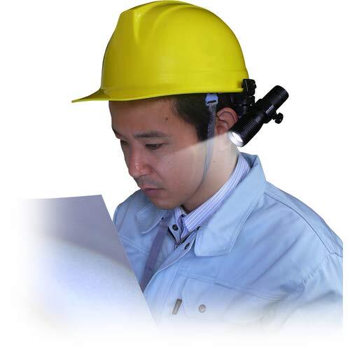 ヘルメットに装着することで、暗い場所での作業に両手が自由に使える