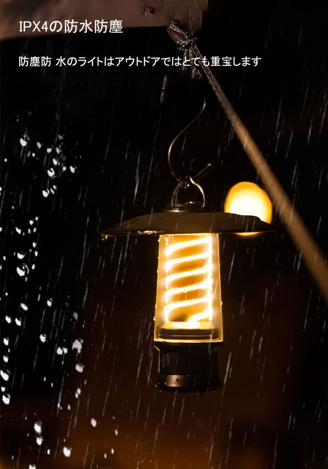 【ポータブル、多機能】ランタンは自立式なので、どこでもお好きな場所に置いて使用することができます。吊り下げ用フックが付いているので、ぶら下げて使用できます。本体単独で懐中電灯として使えます。緊急時にはSOSライトとしても使えるので、アウトドアでの活働にこのランタンがひとつあると安心な存在です!