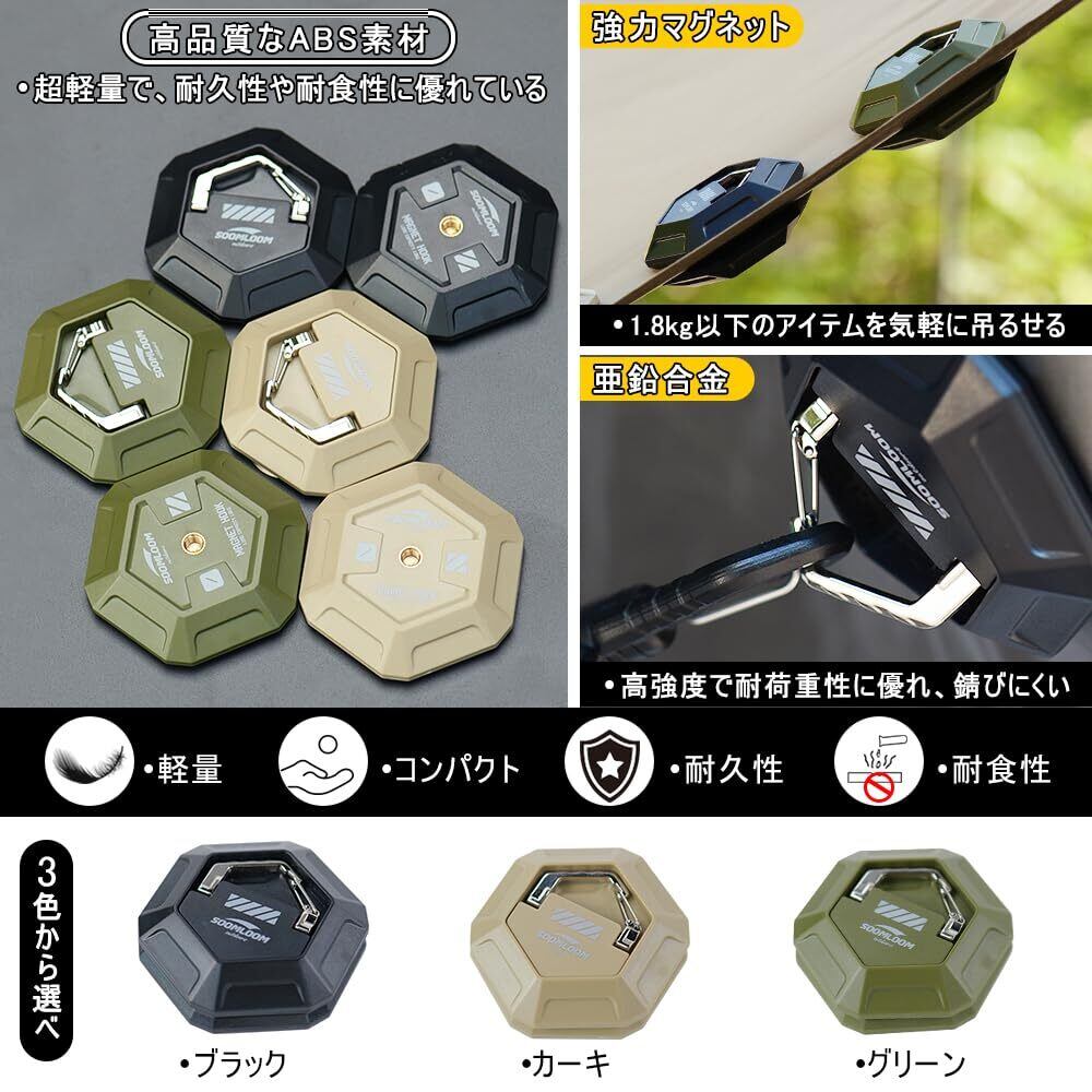 Soomloom超強力吸着式マグネットフック磁石ハンガーセット耐荷重1.8kgテント/タープ幕体設置可能軽量コンパクト1/4インチネジ穴強力磁石ランタンフック小物ハンガー