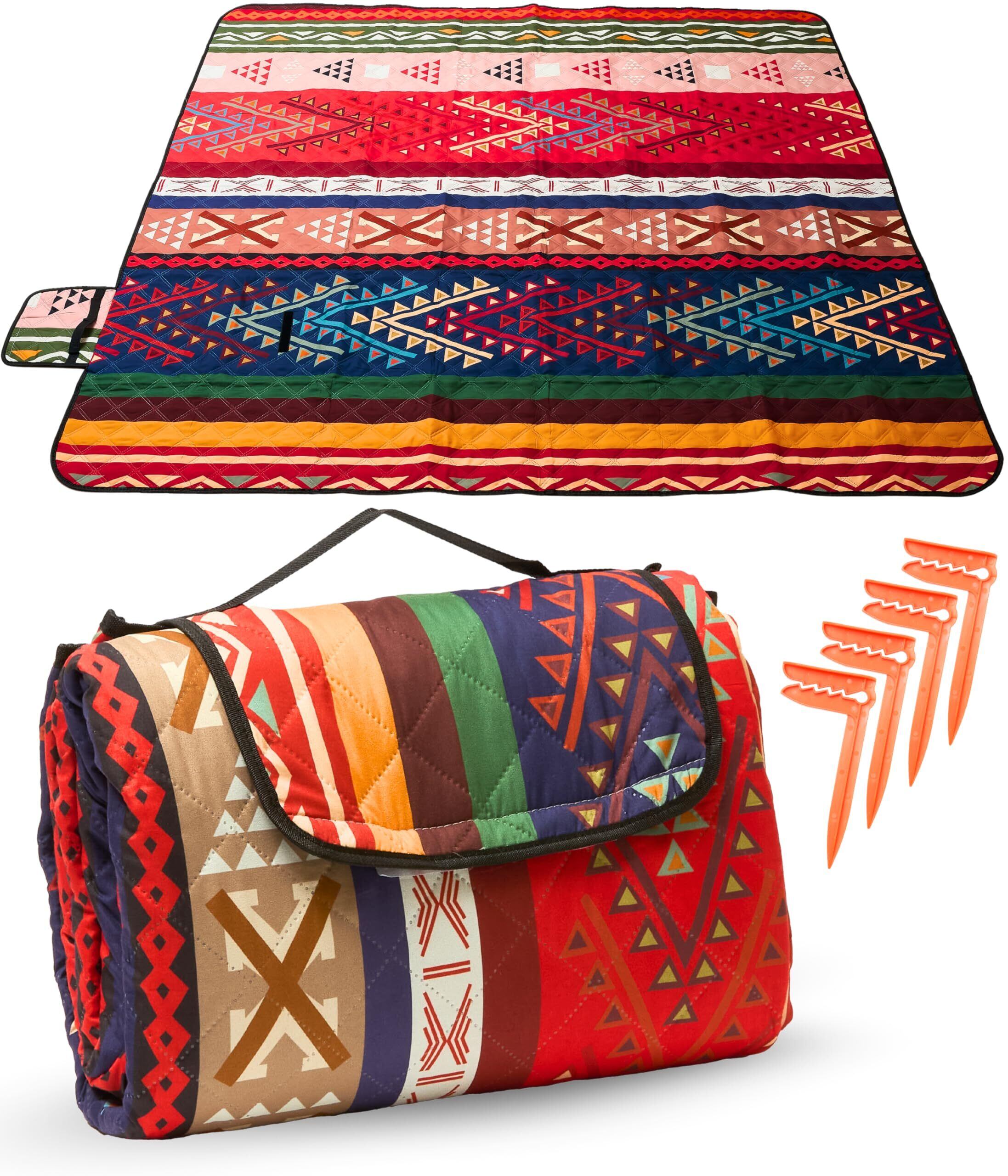 【敷くだけ、ぐんと素敵に】 レジャーシート 厚手 ふかふか 3層構造 民族柄 200×200 cm 大判 キルティング 生地 撥水 洗える | 軽量 コンパクト インナーシート アウトドア キャンプ ピクニック [新登場2025年2月]