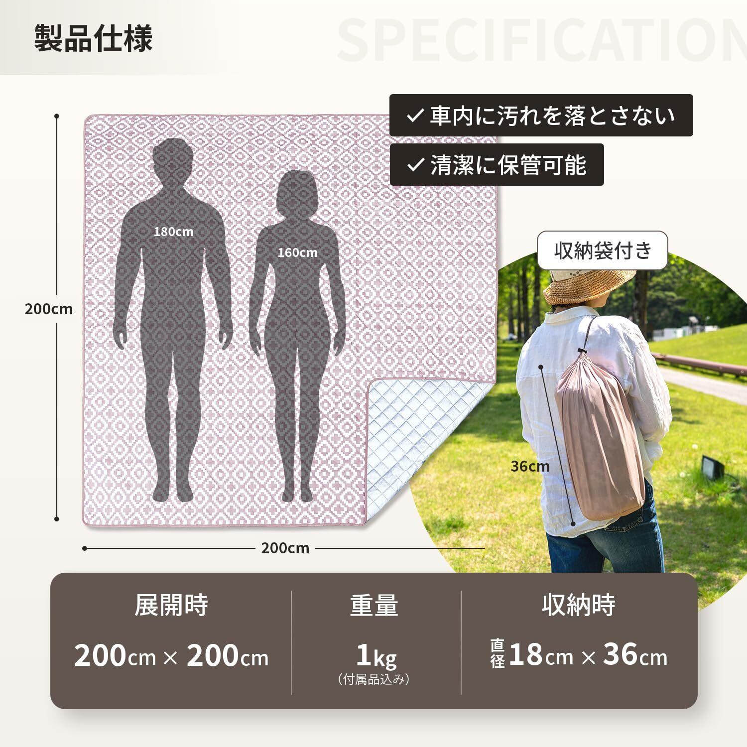 【サイズ】展開時:200×200cm(3~5人用)|収納時:直径18×36cm(1.0kg)