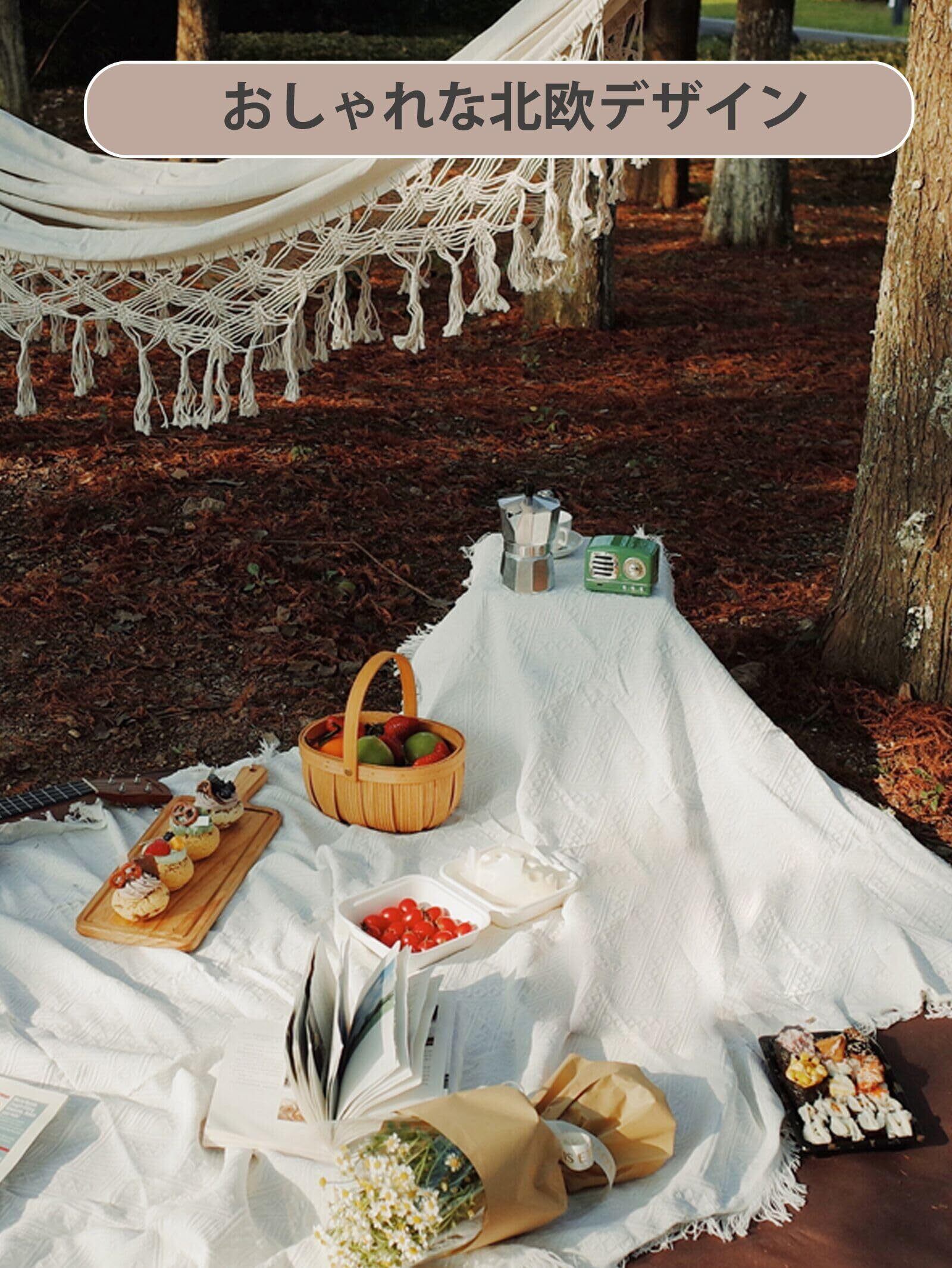ピクニックシートは、通気性の良い綿素材で作られ、肌に優しい滑らかな触り心地を実現。