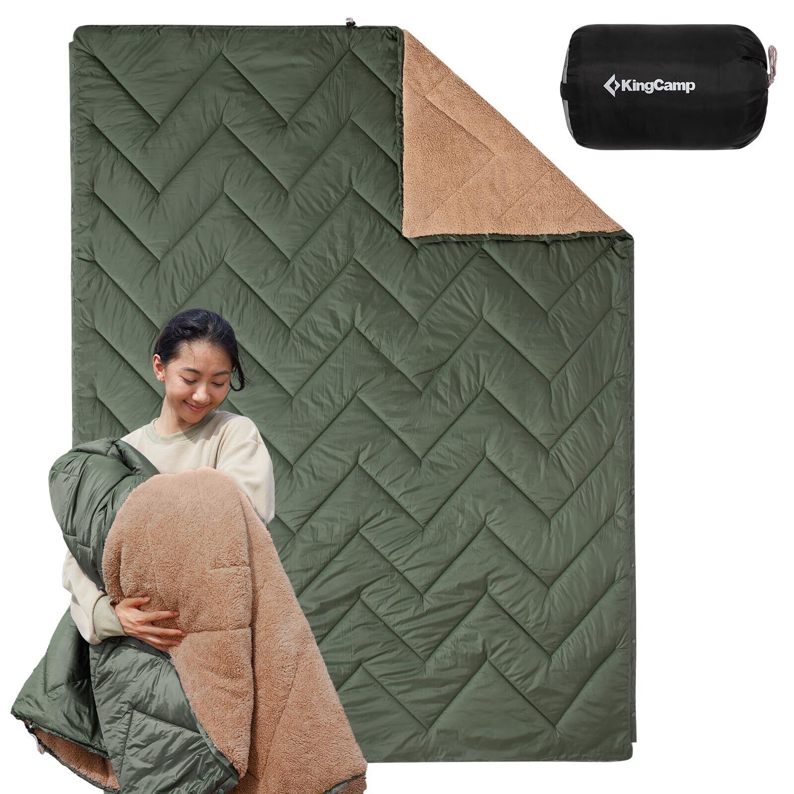KingCamp ブランケット キャンプ フリース マルチブランケット 寝袋変形可能 200×145cm 大判 連結可能 防寒 保温 軽量 コンパクト 車中泊 防災 アウトドア カーキ/オリーブ