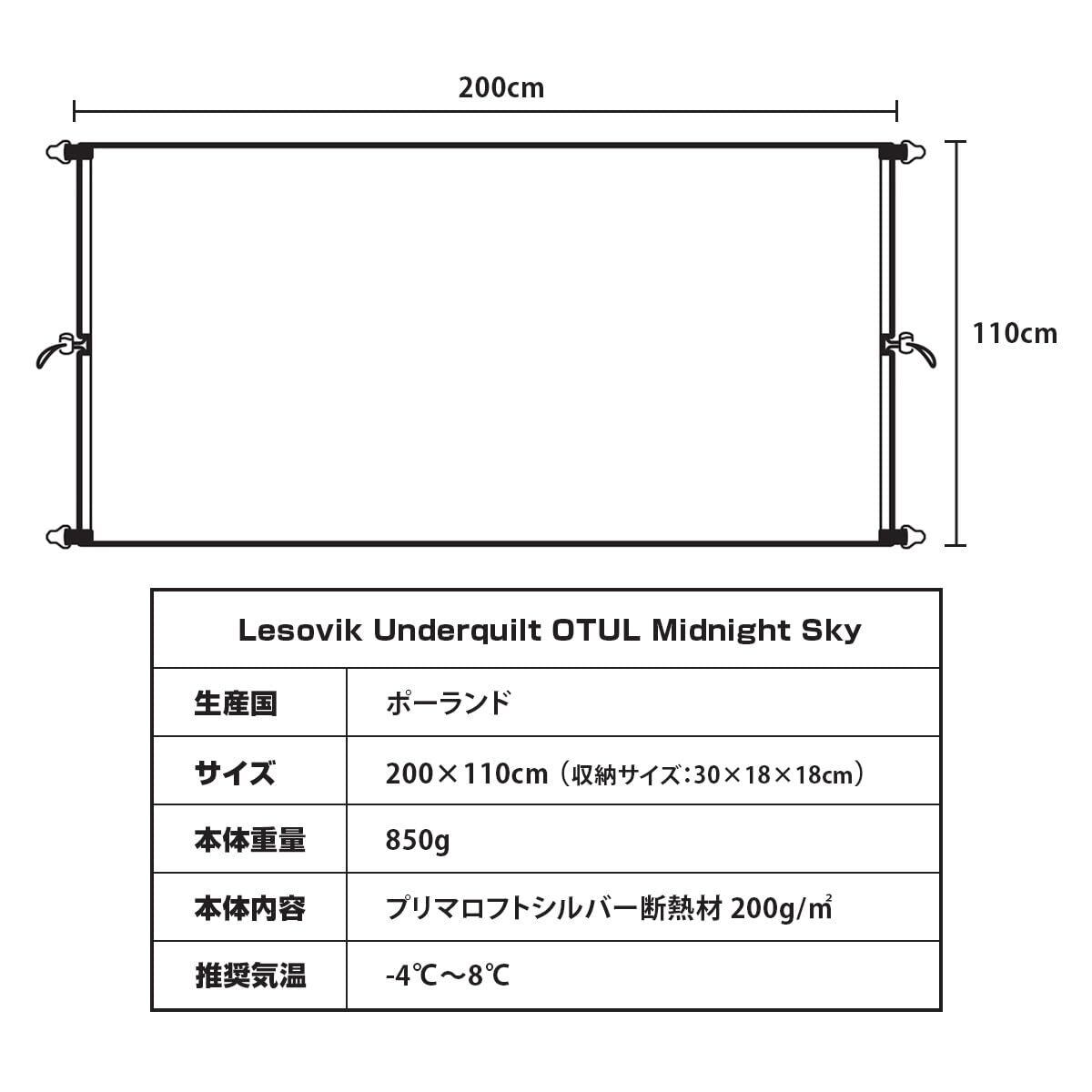 Lesovik アンダーキルト OTUL オトゥルシリーズ ハンモック用 防寒 アンダーブランケット 寒冷地仕様 極厚 マイナス4℃まで対応 200cm ブラック ミッドナイトスカイ
