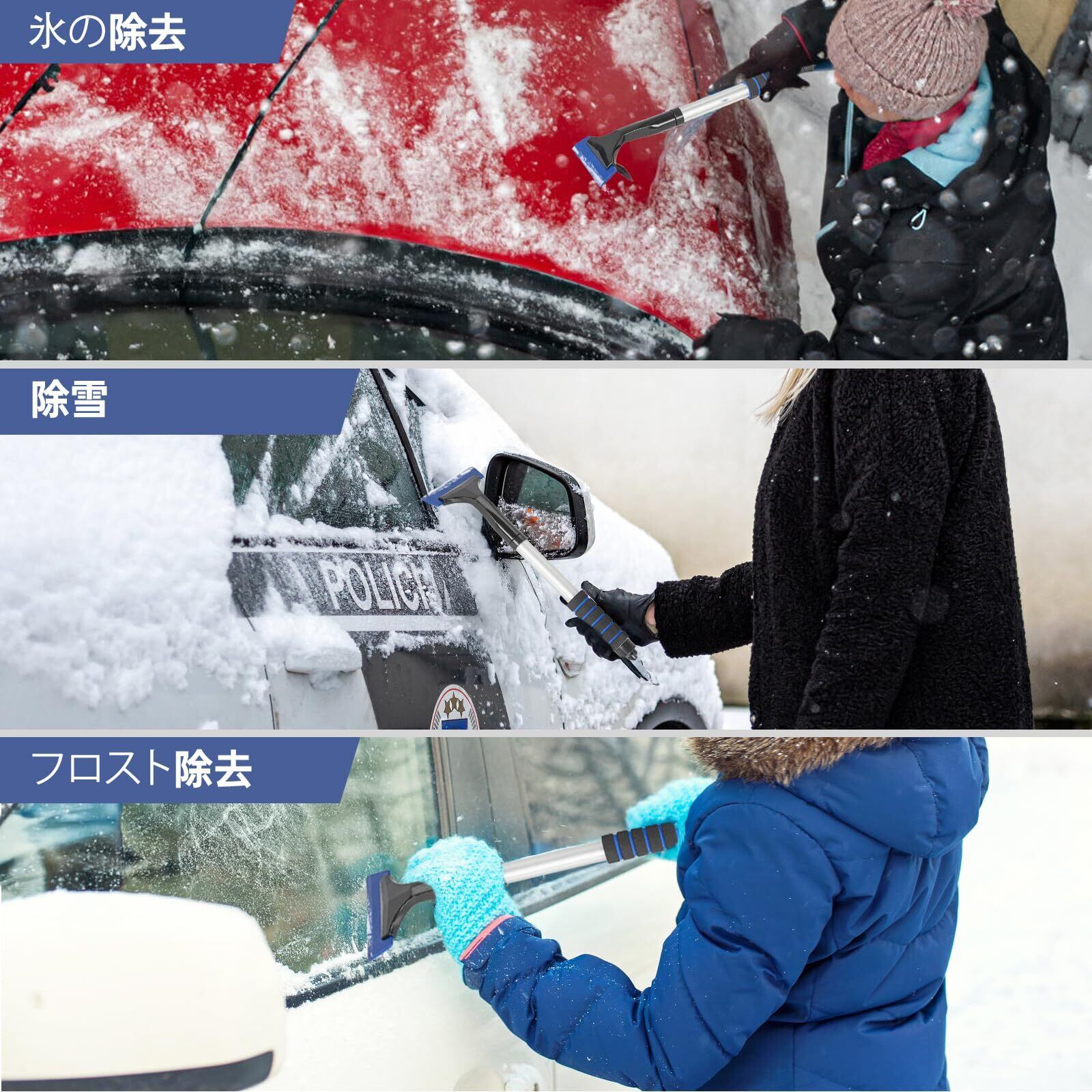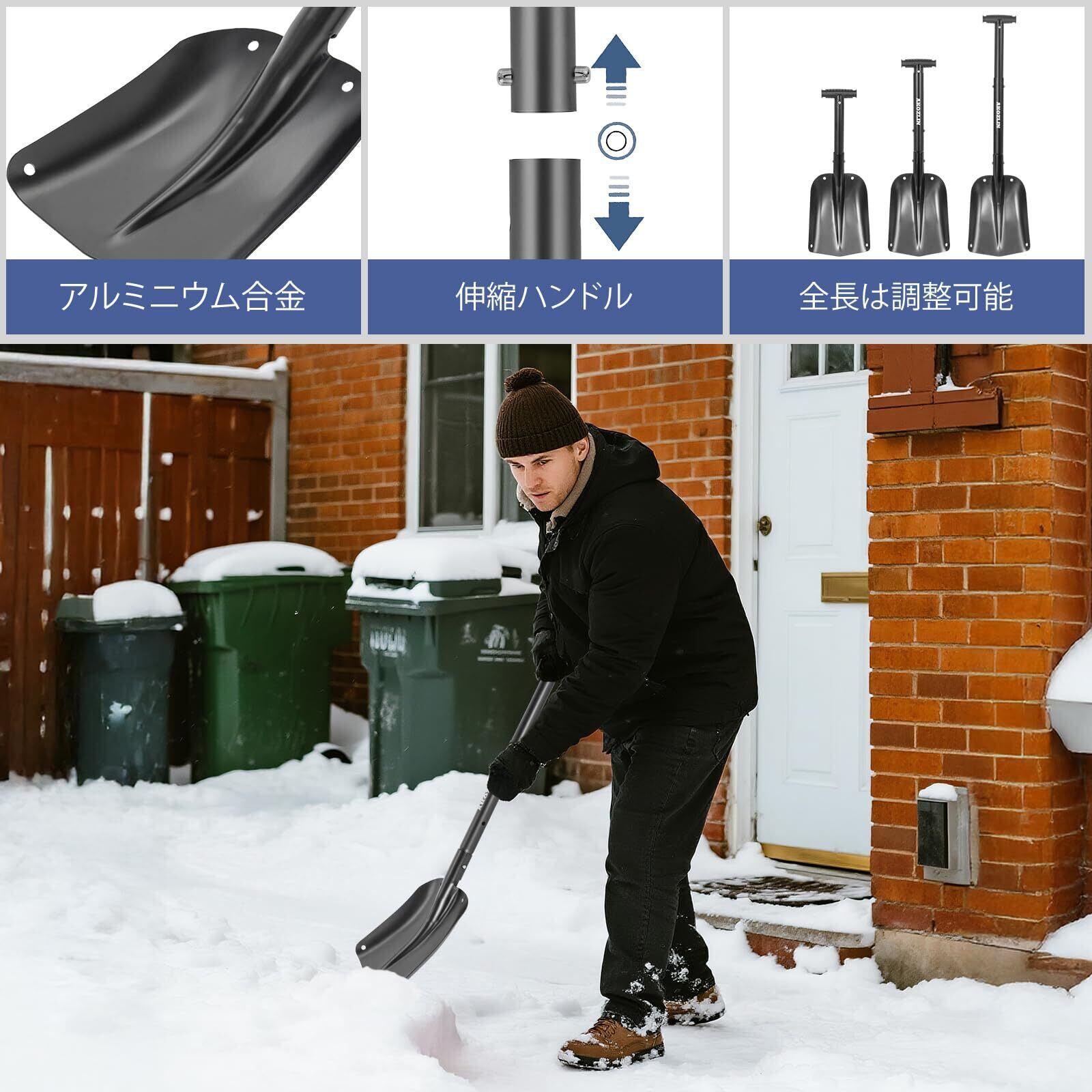 AKOZLIN 雪かきスコップ アルミ合金 除雪 車載スコップ 持ち運び便利 伸縮式ハンドル54-82cm調節可能 雪落とし 収納バッグ付き スノースクレーパー付き 軽量 組み立てが簡単