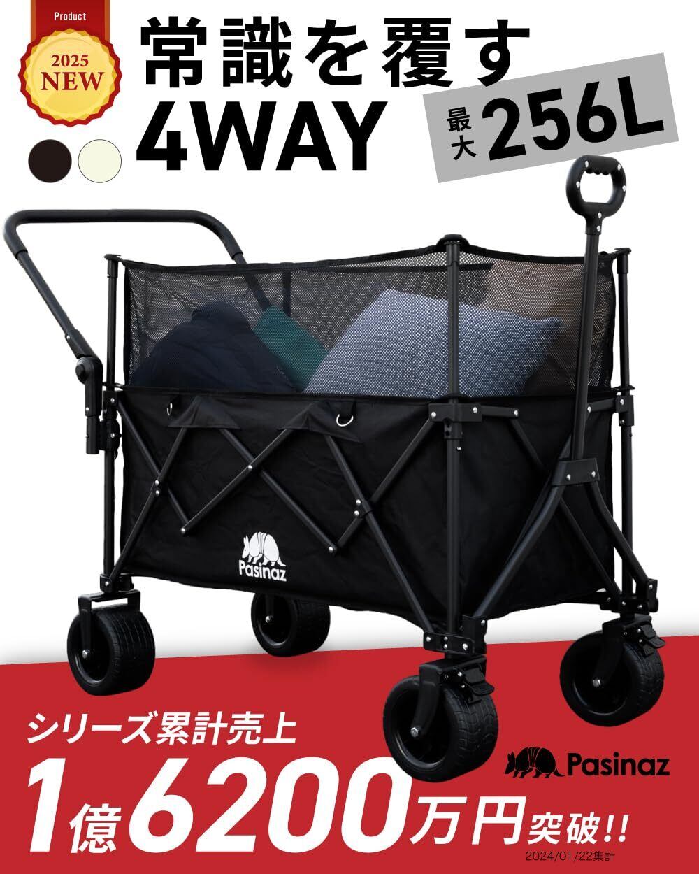 YouTen(ユーテン) 2025年 最大256L アウトドアワゴン キャリーワゴン キャリーカート 片手ハンドル 両手ハンドル 長物 大容量 ワイドタイヤ タイヤ取り外し可能 オシャレ 折りたたみ