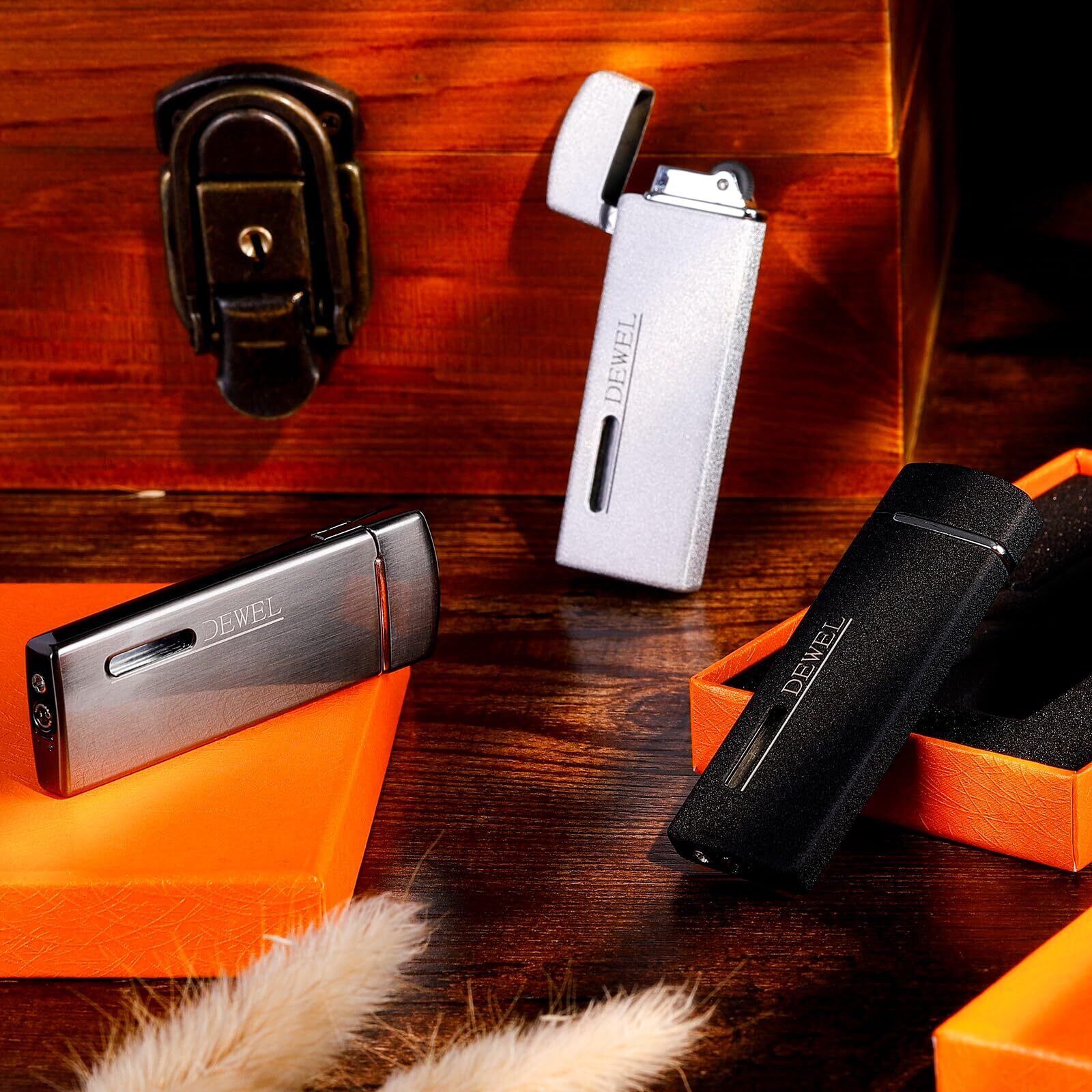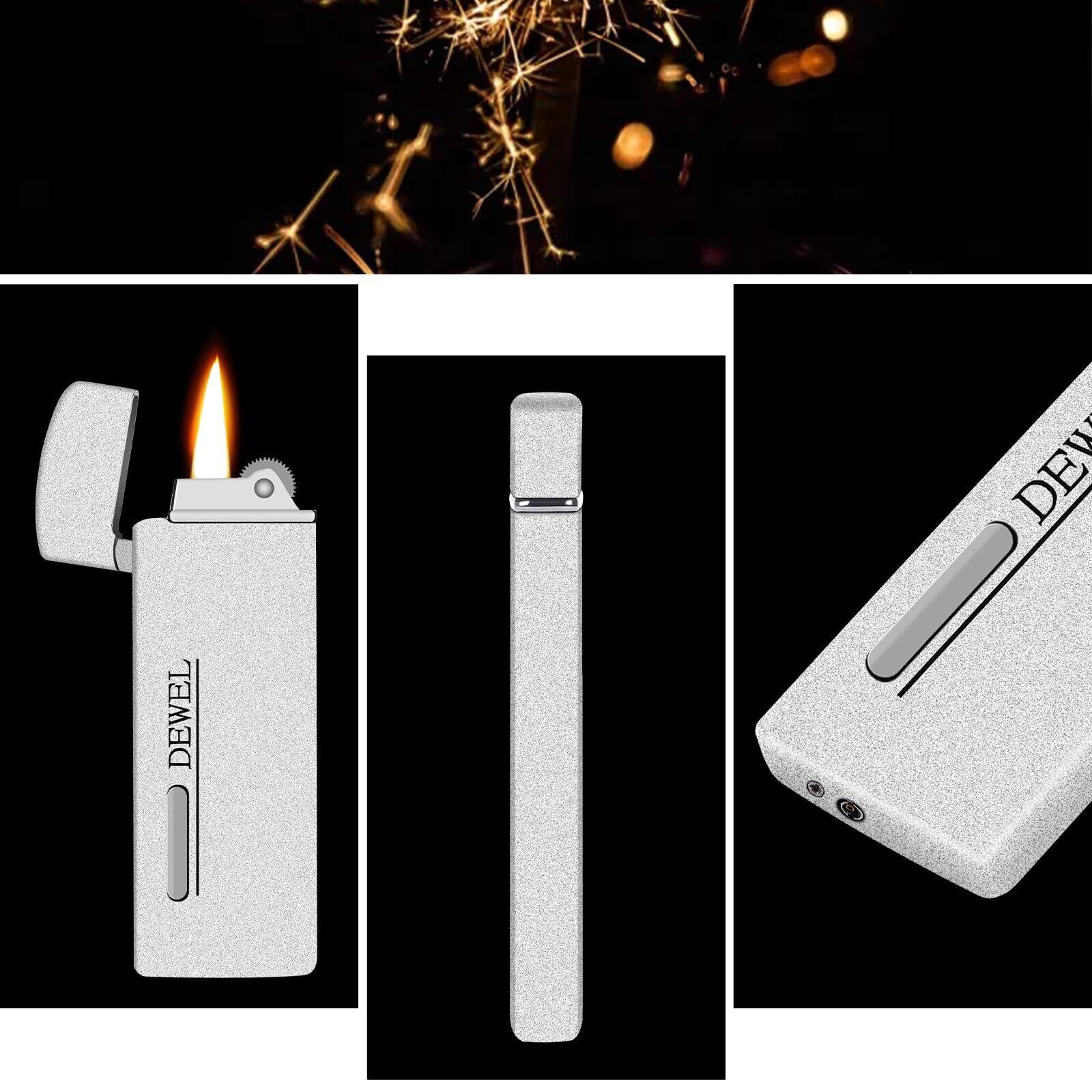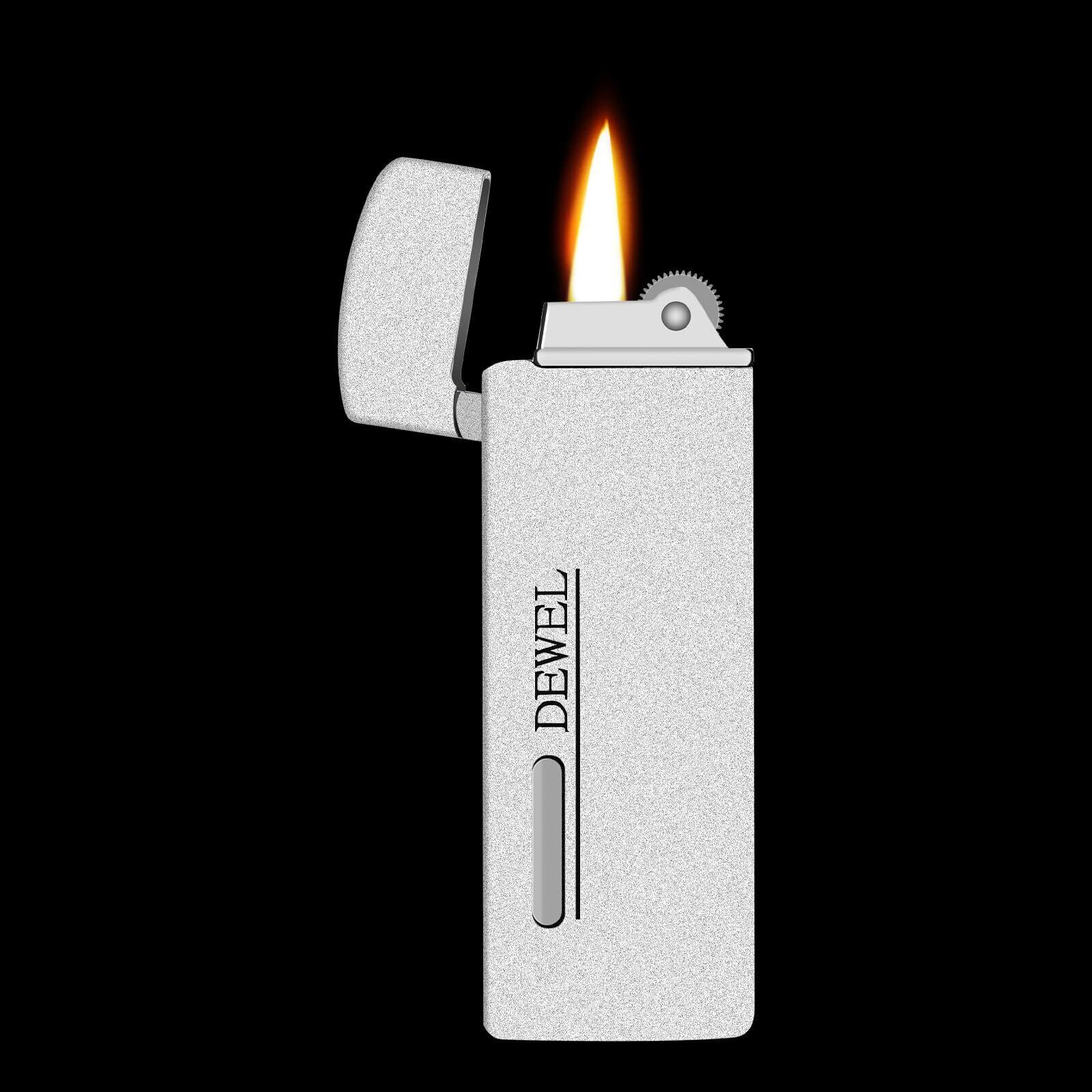 DEWEL ライター ガス注入式 軽量 小型 金属性 硬め スリムガスライター 携帯便利 ギフト包装 オイルライター 父の日 男性プレゼント おしゃれ(マットシルバー)