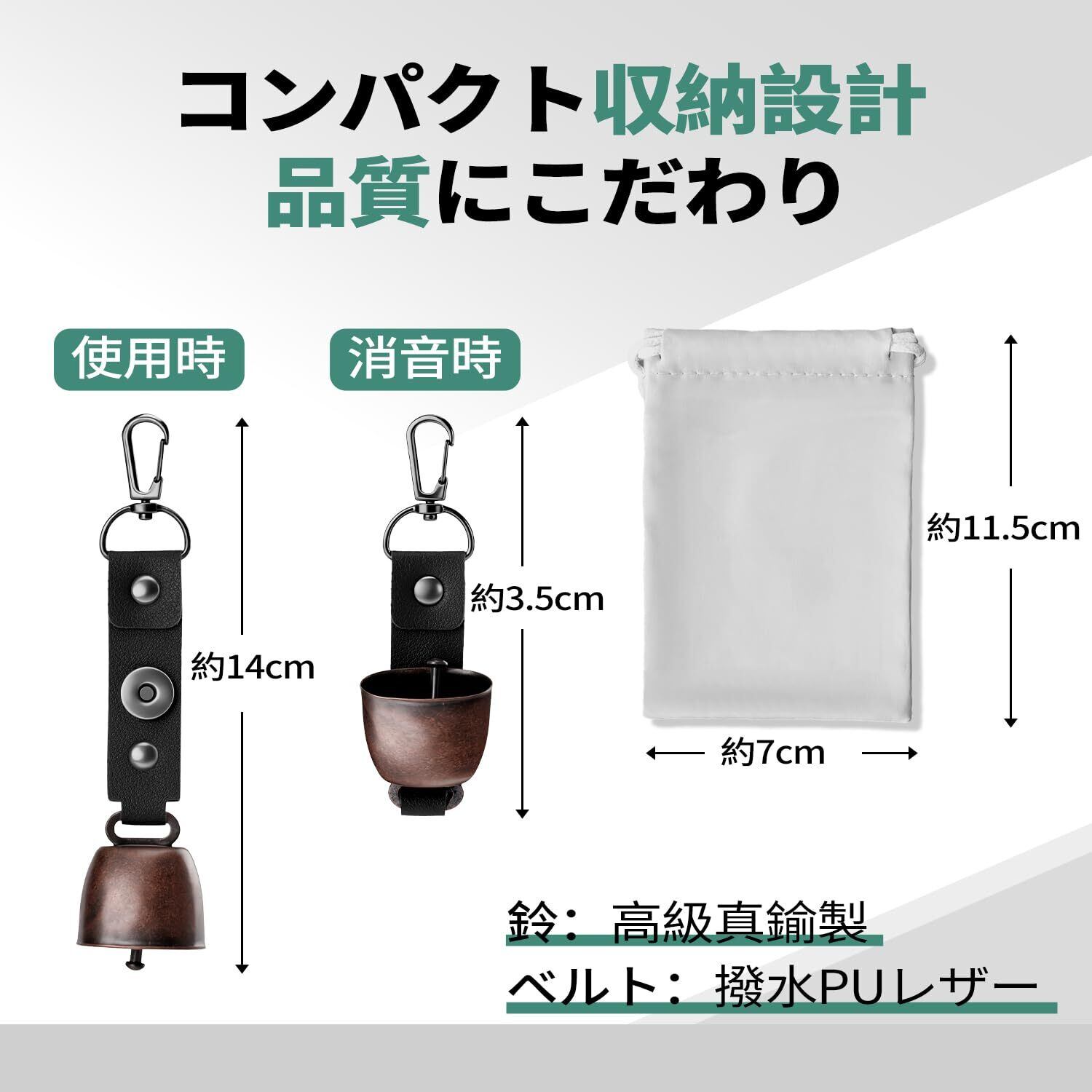 熊鈴 【2個セット 収納袋付】消音機能付き 大音量 熊よけ鈴 軽量コンパクト 登山 熊対策 ハイキング トレッキング くまよけグッズ 防熊 ベアベル 自転車鈴 兼用