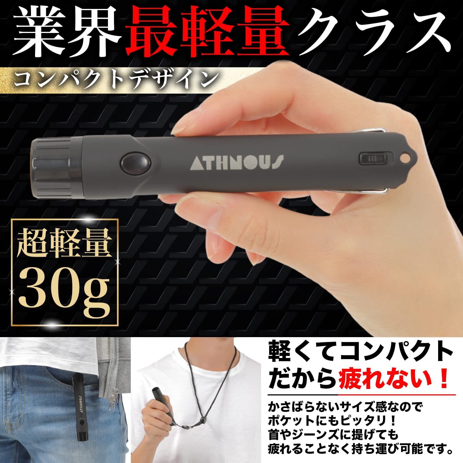 【圧倒的な軽さ】他社様の製品が70gから100gに対し、製品は電池を入れた状態でわずか30gという驚きの軽さです。