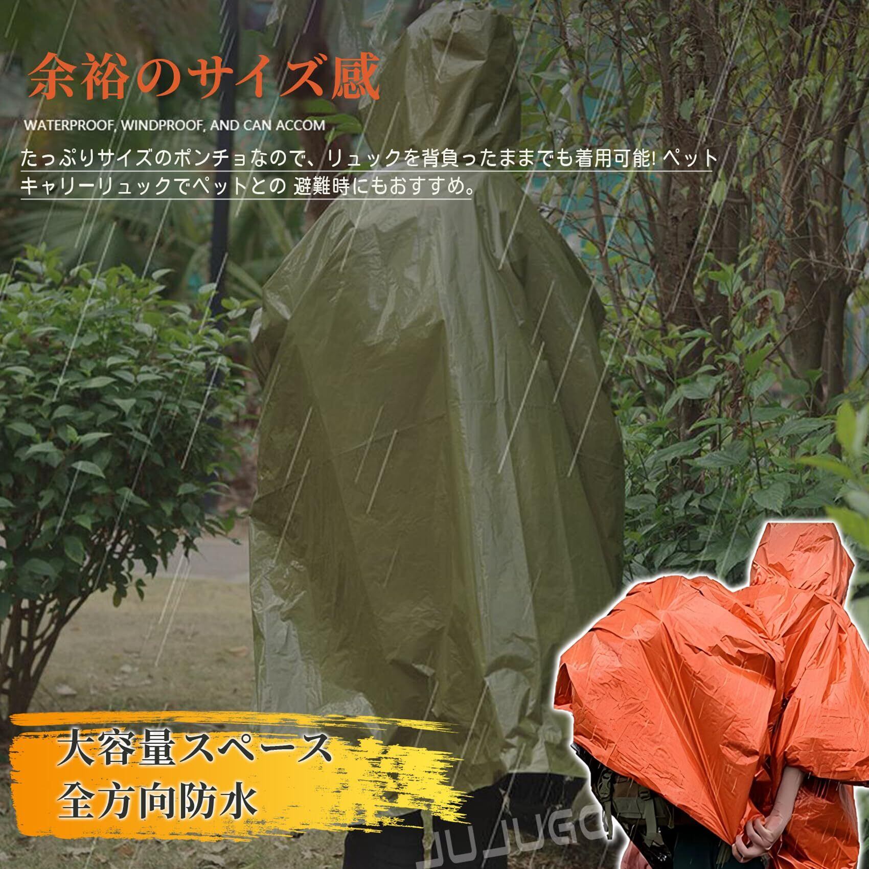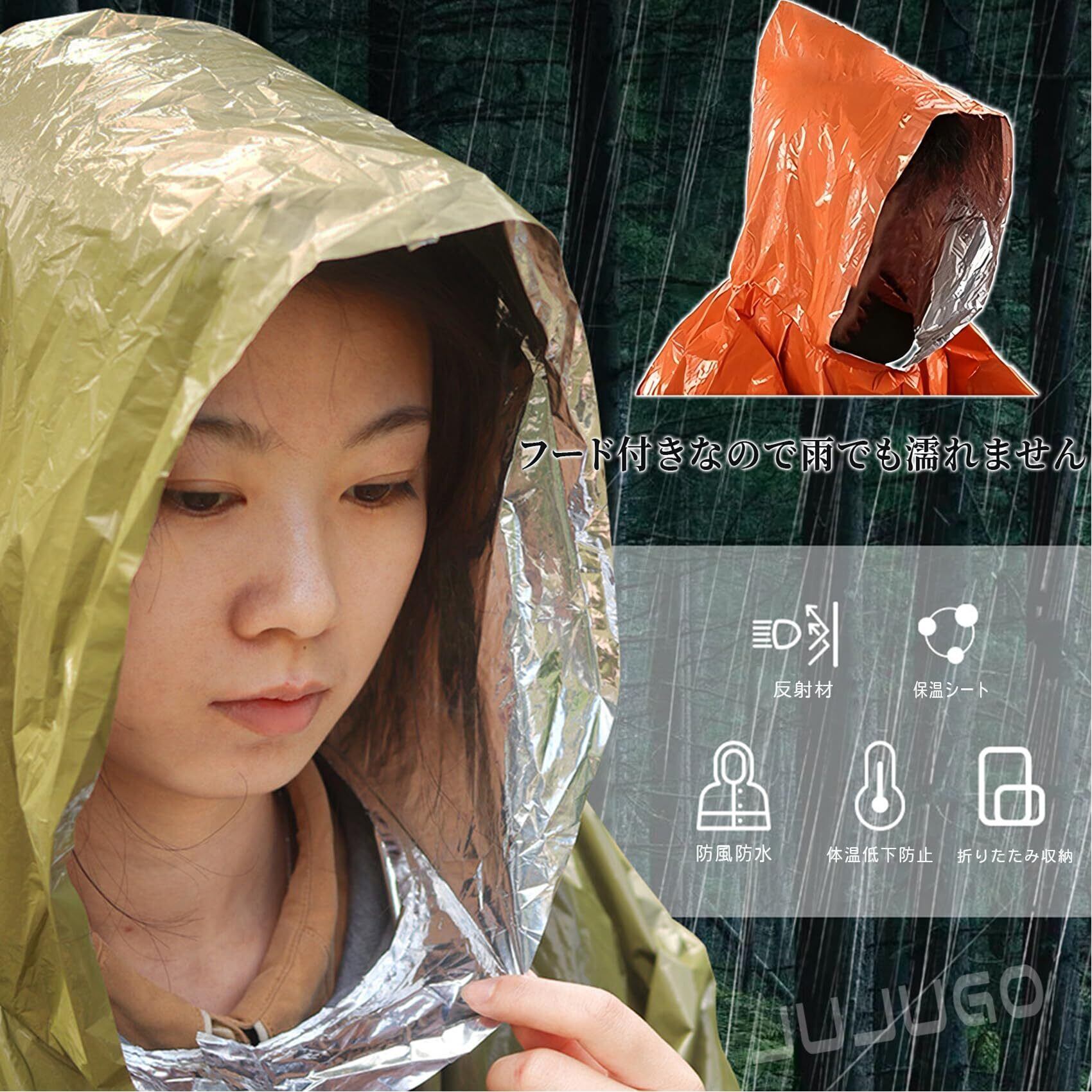 [JUJUGO] 防災ポンチョ アルミシート リバーシブル 非常用 防寒 レインコート 収納ポーチ付き 防水 防風 コンパクト 災害対策