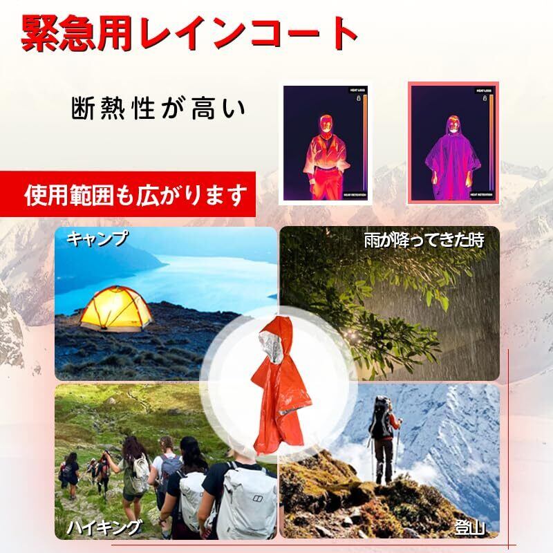 【サイズ】パッケージサイズ:1枚セット:16×26×3CM;2枚セット:27×35×3CM;4枚セット:30×35×5.5CM;アルミシートサイズ:130×210CM;サバイバル寝袋サイズ:90×210CM;緊急用レインコートサイズ:100×120CM