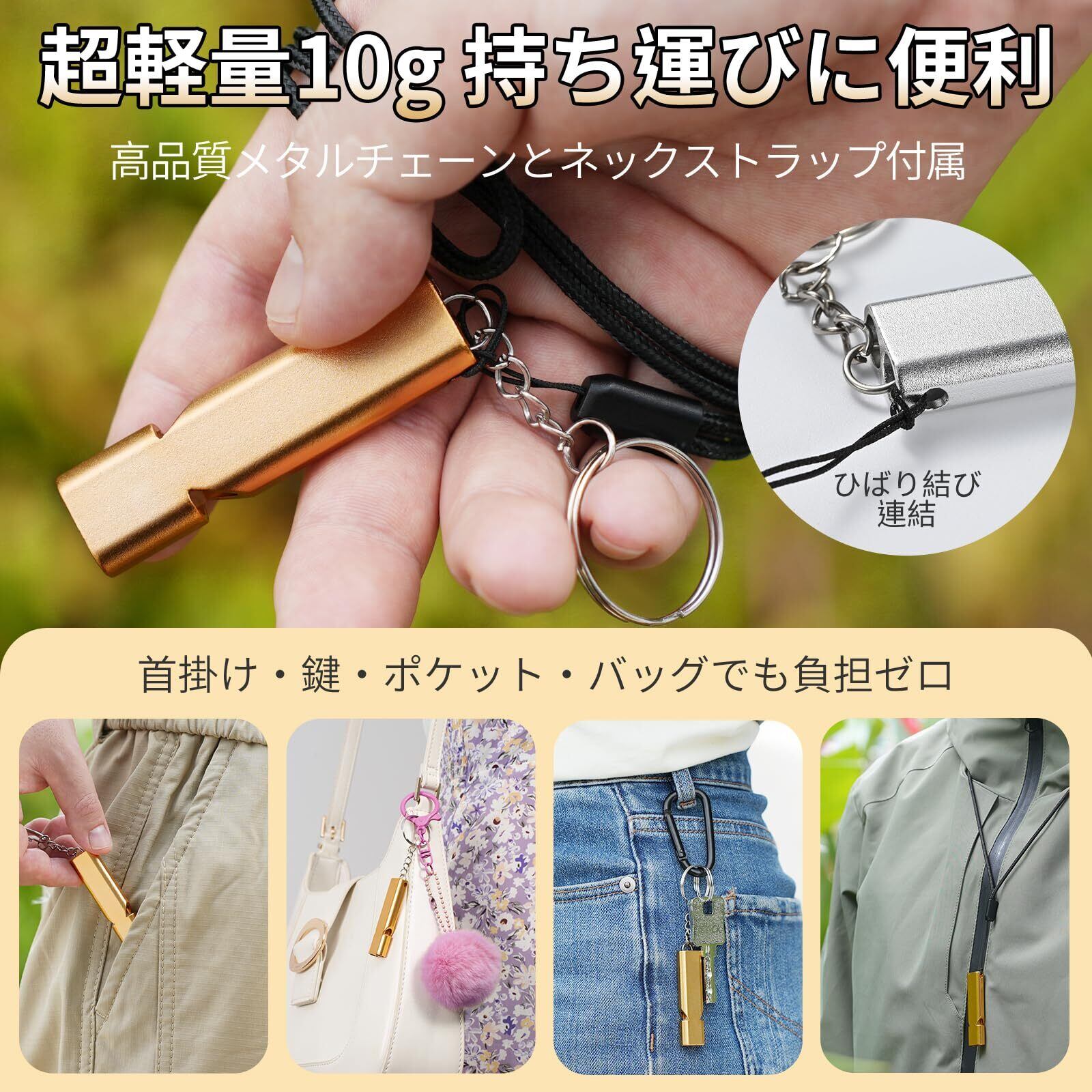 ホイッスル 防災 笛 大音量 吹きやすい アルミ合金製 小型軽量 緊急用 キーチェーン&首掛け用品付き 防災 防犯 アウトドア スポーツ 審判用 アルミ合金製
