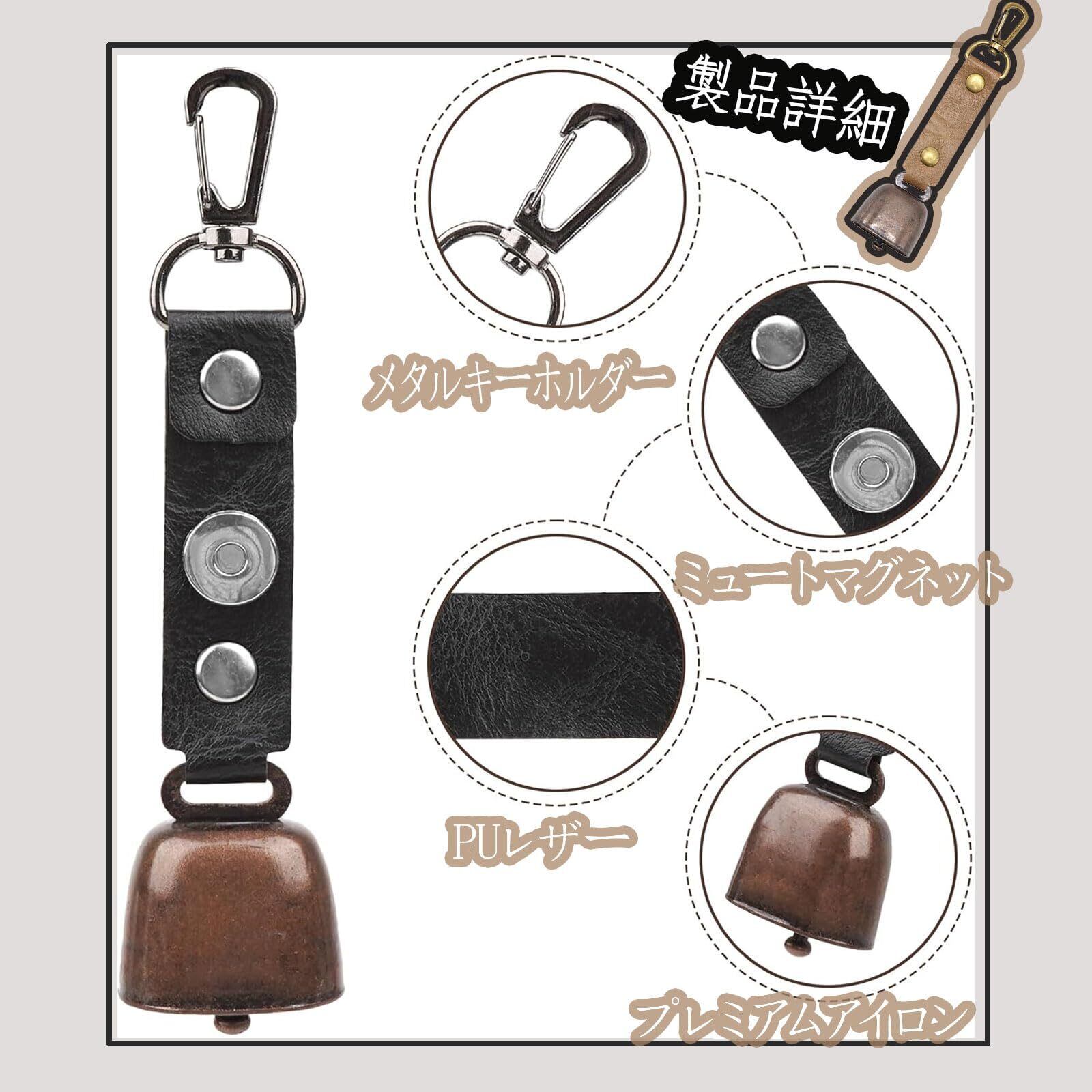 熊鈴,熊よけ鈴, 熊よけベル, マグネット式サイレンサー付き大音量クマベル2個パック、レザーボタンストラップ、クマカラビナ、ハイキングギア、サバイバル、ハイキング、サイクリング、釣り、登山用の真鍮製キャンプ用クマベル