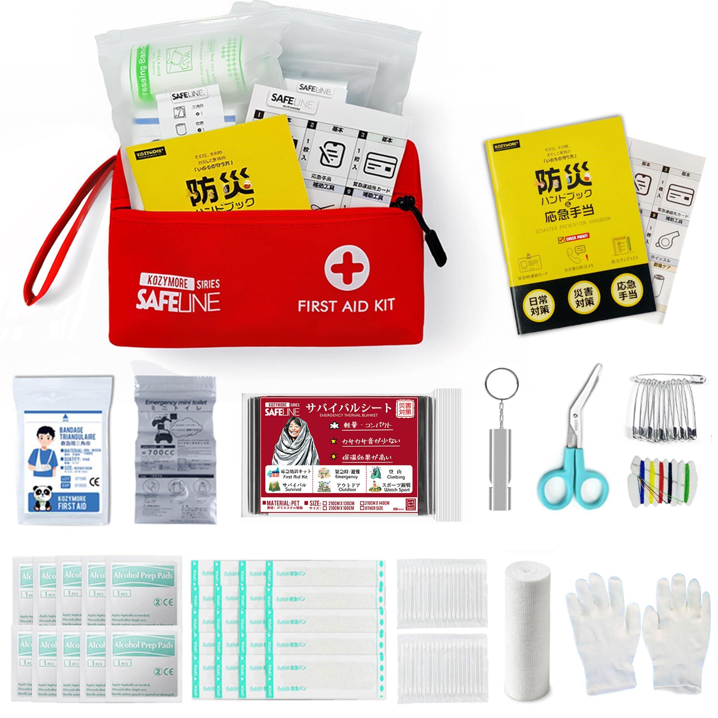 救急セット 防水 携帯用 ファーストエイド キット 15種類 防災士推奨 アウトドア 登山 車 防災グッズ 非常時用 応急手当付…