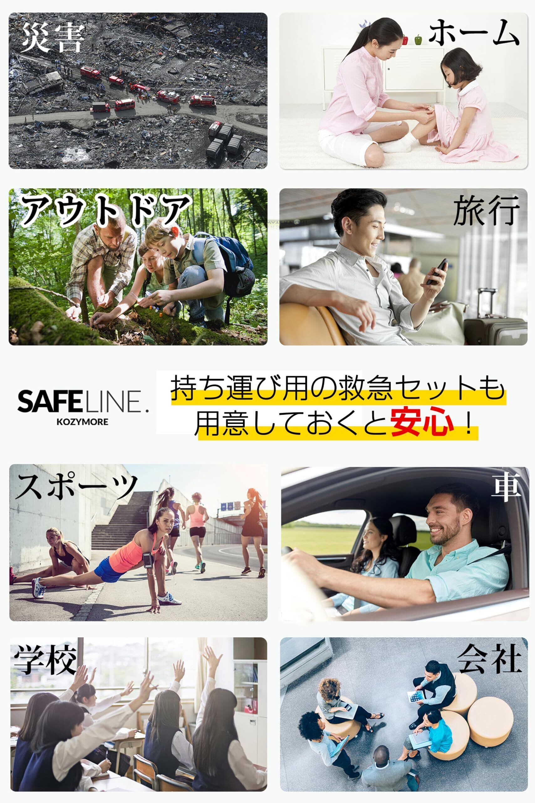 【多目的用途】これは、様々な生活シーンに柔軟に対応できる救急セットです。カナビラと視認性の高い十字のロゴを備え、登山・キャンプ・車載・アウトドアスポーツ時の携帯にとても便利です。その他、オフィスの引き出し・子供の学校・旅行用バックパックに入れても場所を取りません。もちろん、地震・自然災害への防災グッズとしてもおすすめです。