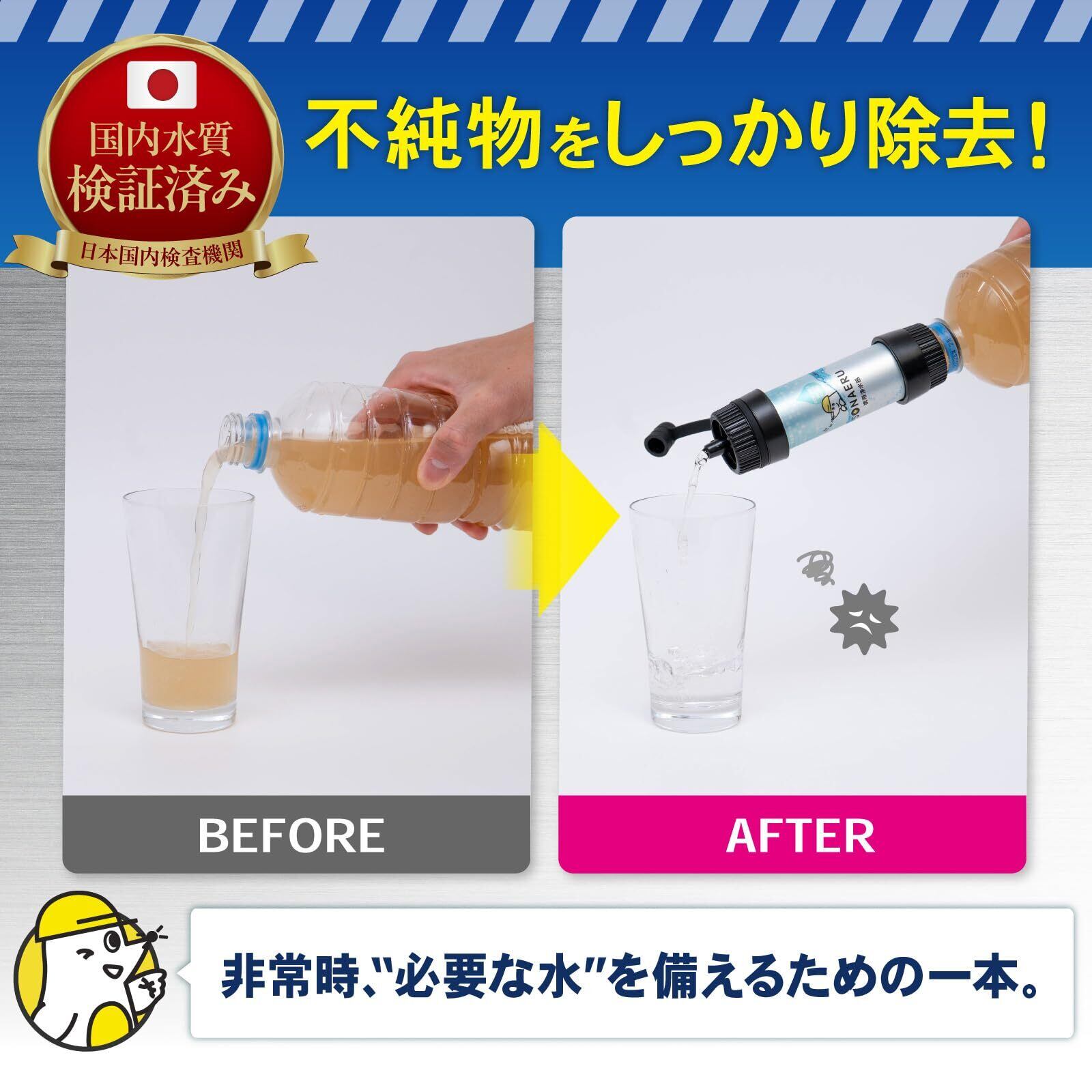 【日本企業が企画・開発・品質管理】本製品は、福岡発のブランドPYKES PEAKによって企画・品質管理された日本仕様の携帯浄水器です。非常用トイレなどを展開する「SONAERU」シリーズの一環として、使いやすさと実用性を重視して設計されています。国内の防災ニーズに応える品質で、万が一の災害時にも信頼して使えるアイテムです。※初回使用時は、最初にろ過された約200mlの水は飲用せず、破棄してください