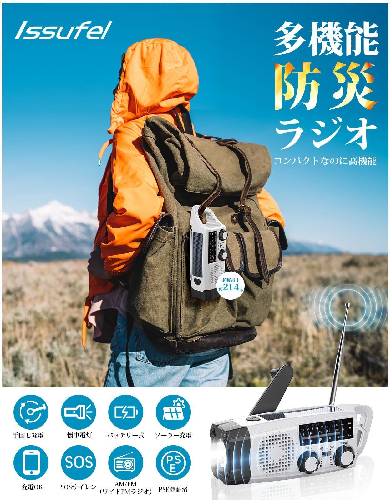 【高感度受信!SW/AM/FM(ワイドFM)ラジオ】災害時の強い味方!Issufel 防災ラジオはSW(2.3~22MHz)、AM(522~1656KHz)、FM(76~108MHz)の受信周波数に対応しています。FMの電波でAMの放送を聴くことが可能で、台風や地震、津波など災害時の重要な情報をクリアな音質でお届けします。また、伸縮アンテナを搭載しております、抜群な受信感度を実現できます。現状把握と情報確保できるIssufel 防災ラジオであなたの安全をサポート。※FM 90.0MHz~94.9MHzに対応したラジオはワイドFMが受信できます。(本多機能ラジオ:FM 76~108MHz対応)