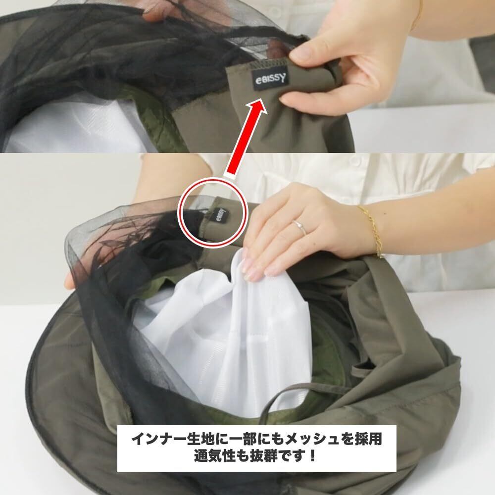 [EBISSY] 虫除けネット付き 帽子 日除け 一体型【 メッシュ 通気性 折り畳み コンパクト 】 UV 紫外線対策 園芸 農作業 ガーデニング アウトドア 釣り