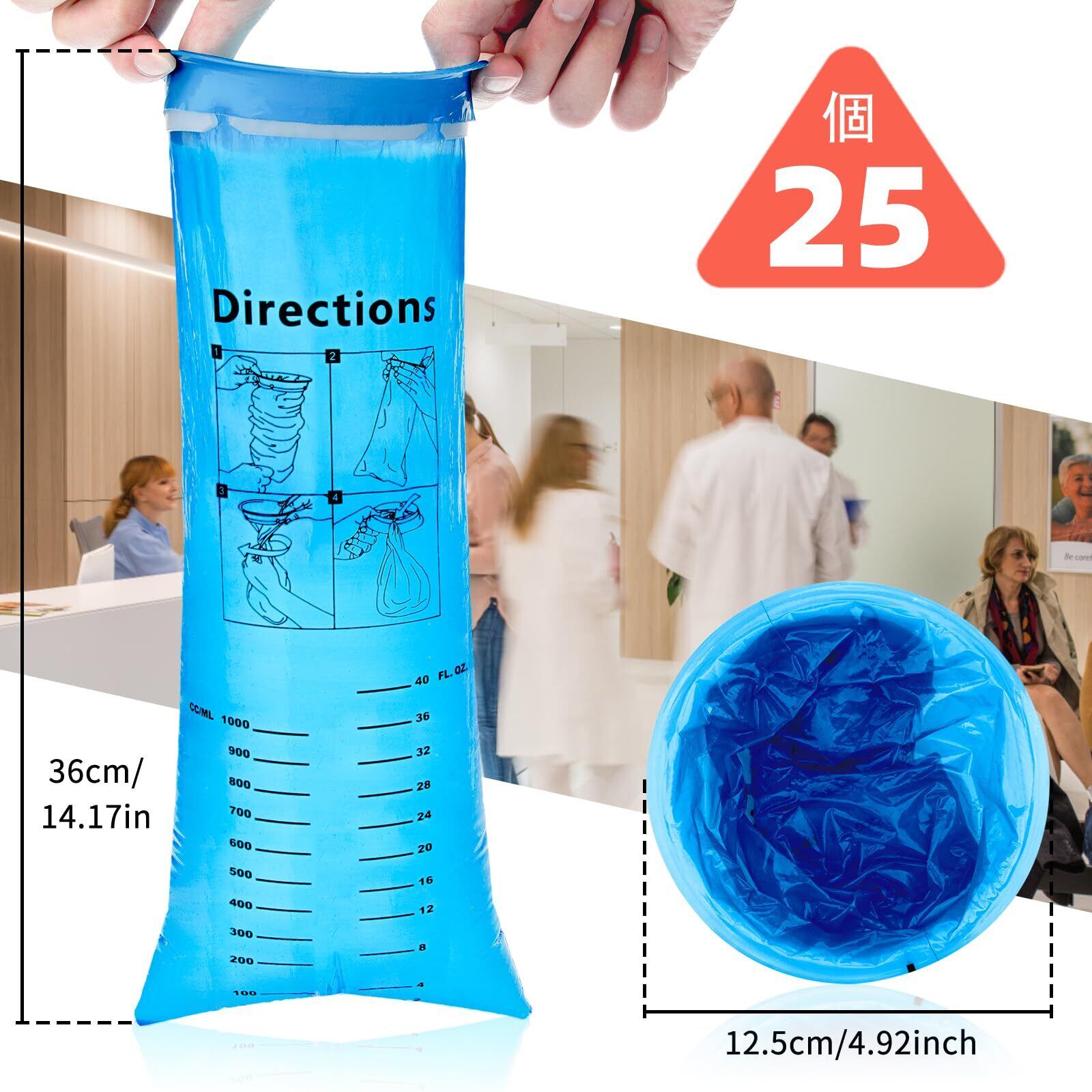 【漏れ防止設計】: 安全で破れにくい素材で作られた使い捨て嘔吐バッグは厚く、漏れ防止です。 嘔吐物袋は約1000mlの大容量なので、嘔吐物袋を伸ばすと飛沫が飛び散りにくい長さです。 当社の嘔吐物袋は、ノッチ付きリングにねじって固定するため、嘔吐物にさらされることがなくなり、臭いが最小限に抑えられます。