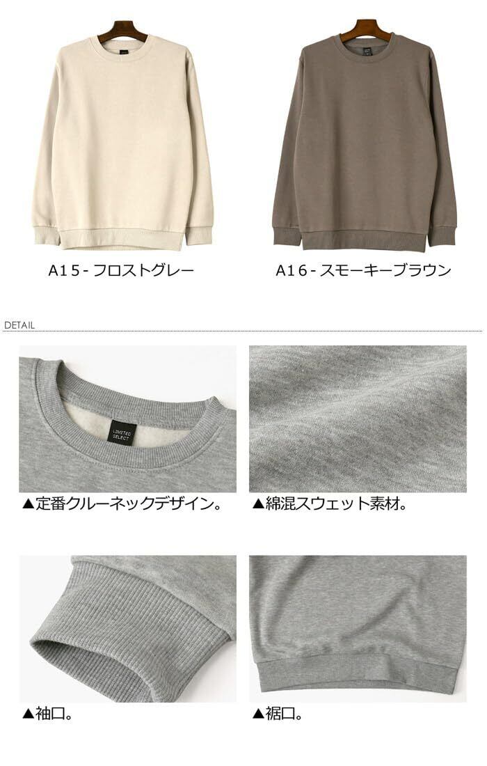 [LIMITED SELECT] (リミテッドセレクト) スウェット トレーナー メンズ 暖かい 裏起毛 無地 スエット 裏フリース 長袖