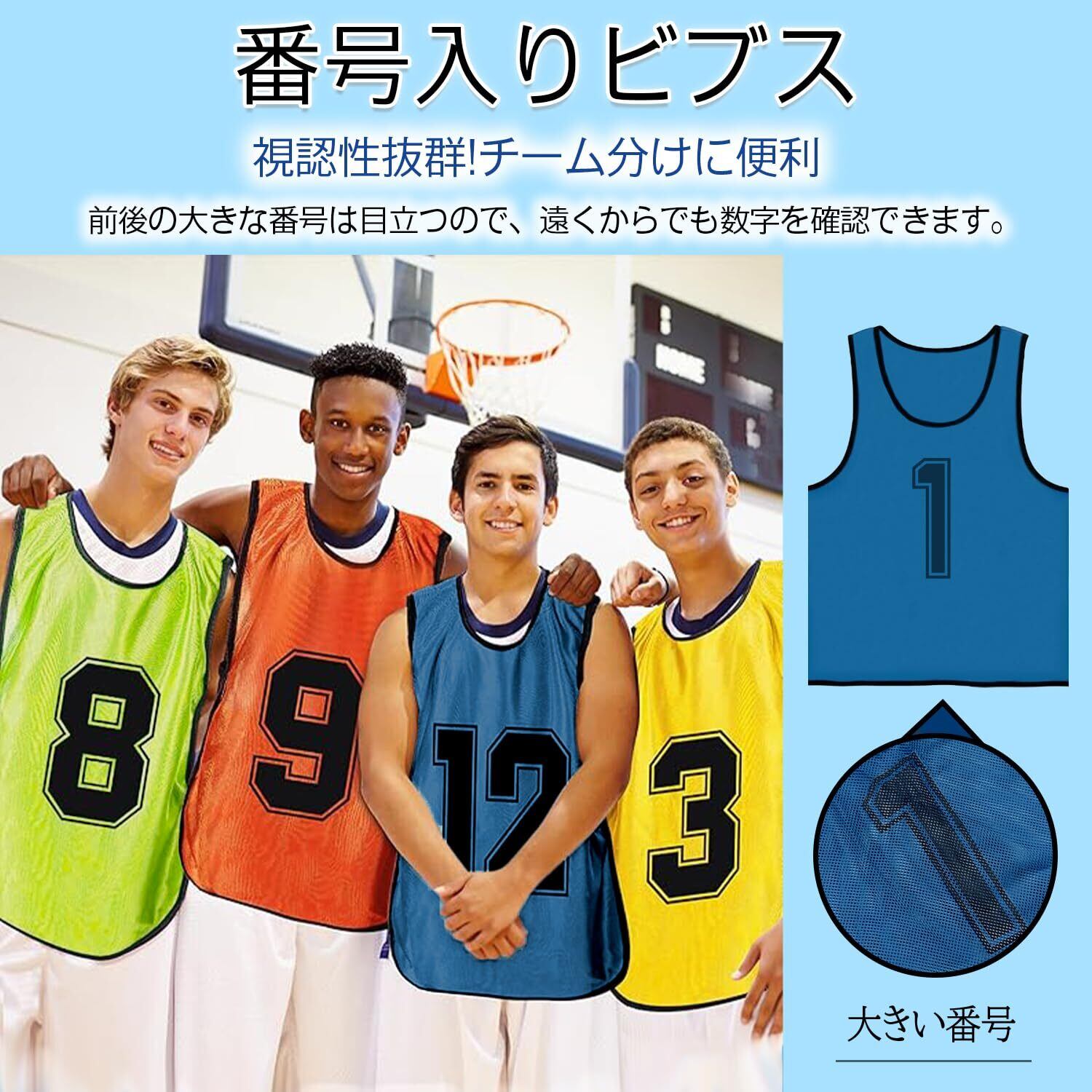 [LEVANA] ビブス 大人 6枚セット 番号入り チームベスト ゼッケンベスト メッシュ 軽量 男女兼用 サッカー バスケ フットサル 学校 運動会 自治体 行事 ビブスセット
