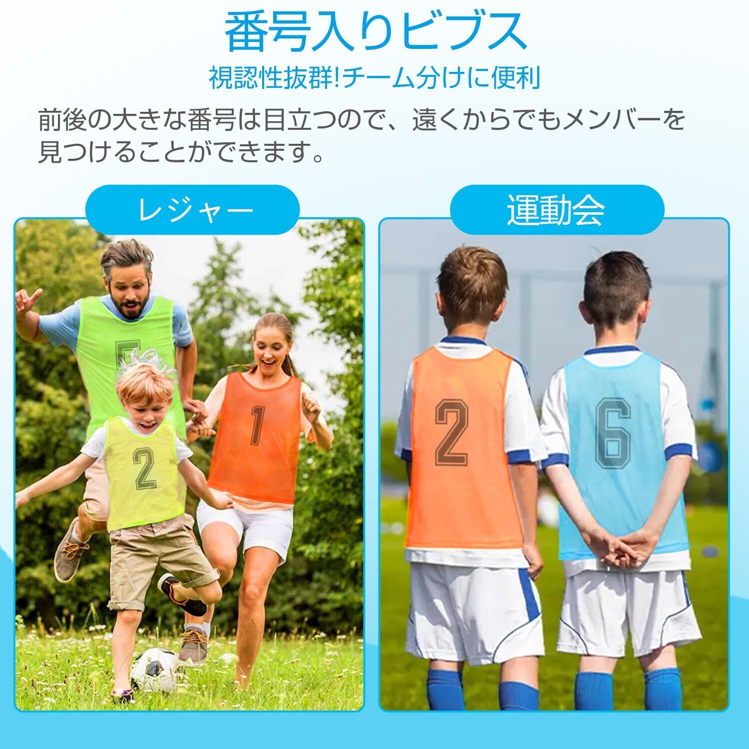 [LEVANA] ビブス 子供用 大人用 ゼッケン 6枚セット 番号入り メッシュ 通気 軽量 男女兼用 チームベスト ゼッケンベスト サッカー バスケ フットサル 学校 行事 自治体 運動会