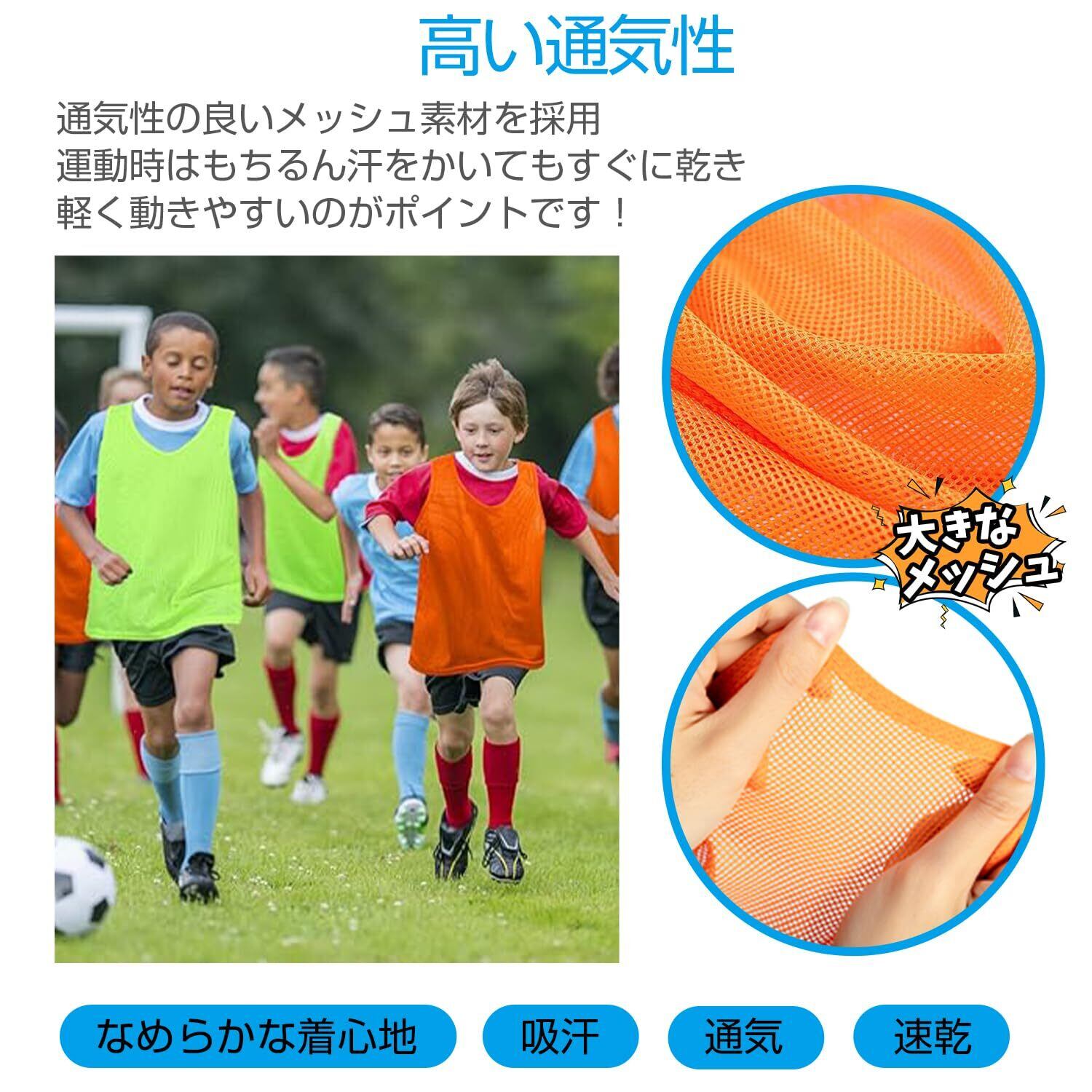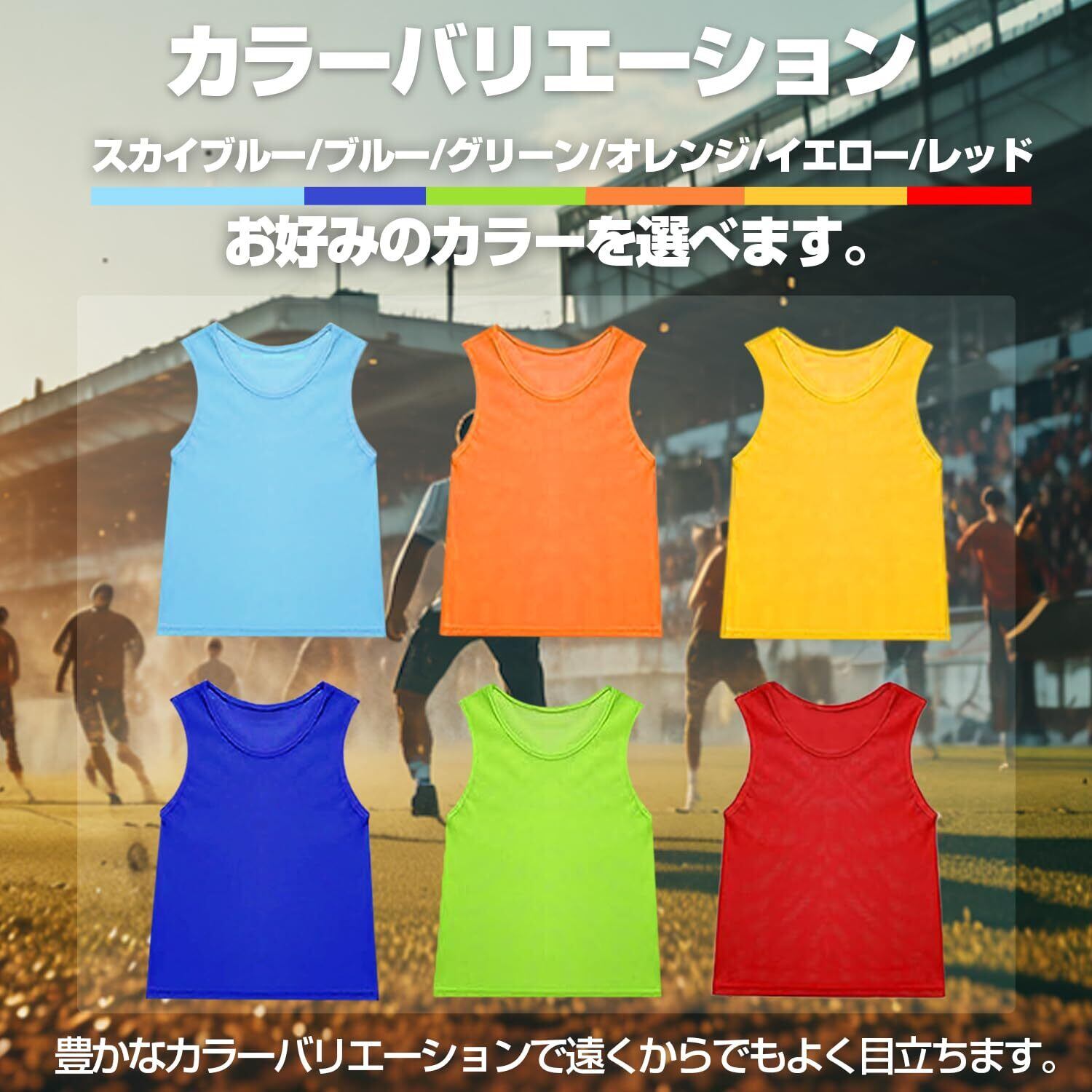 [LEVANA] ビブス 子供用 大人用 チームベスト ゼッケンベスト 6枚セット 無地 番号なし メッシュ 通気 軽量 男女兼用 サッカー バスケ フットサル 学校 行事 自治体 運動会