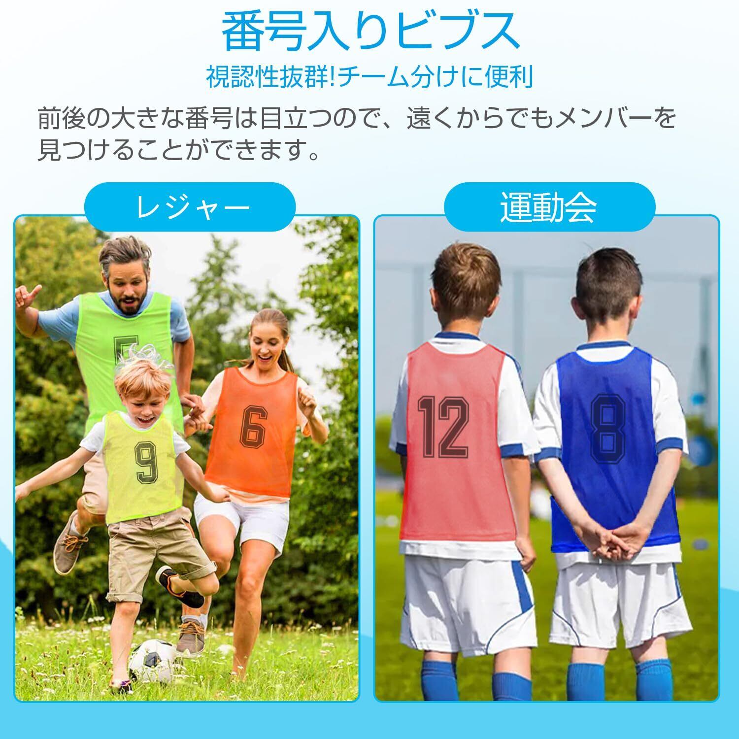 [LEVANA] ビブス 子供用 大人用 チームベスト ゼッケンベスト 12枚セット ゼッケン 番号入り 無地 番号入り メッシュ 通気 軽量 男女兼用 サッカー バスケ フットサル 学校 行事 自治体 運動会