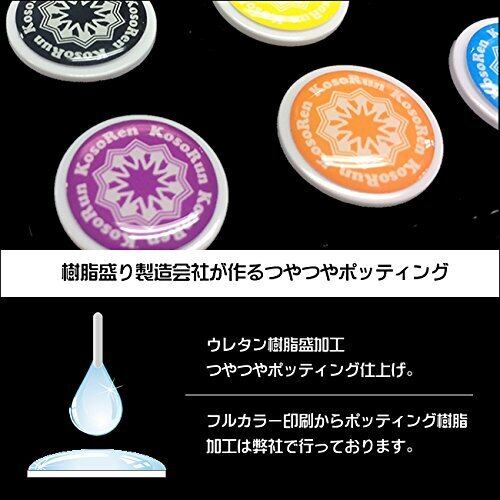【プロモショップオリジナル】プロモショップオリジナルのボタン型で、つけたり外したりするのも簡単です。インクジェットフルカラー印刷し、表面はつやつやポッティング樹脂盛り仕上げです。