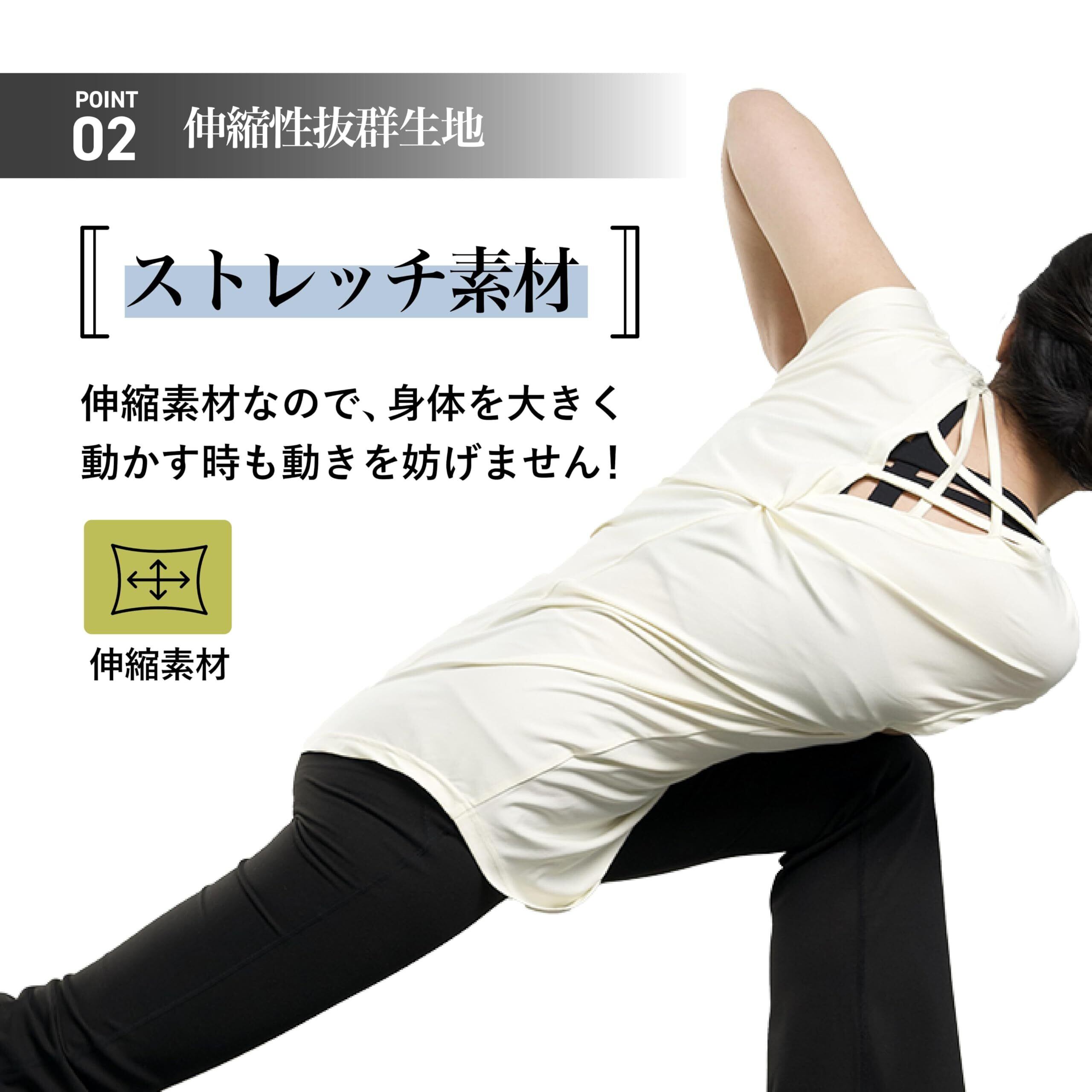 [iito.seasons] ヨガウェア レディース トップス バックデザイン 美背中 ロング丈 丈長 体型カバー Tシャツ クルーネック 半袖 ゆったり 体型カバー 冷感シャツ 無地 女性らしい スポーツ フィットネス トレーニング ルームウェア おしゃれ