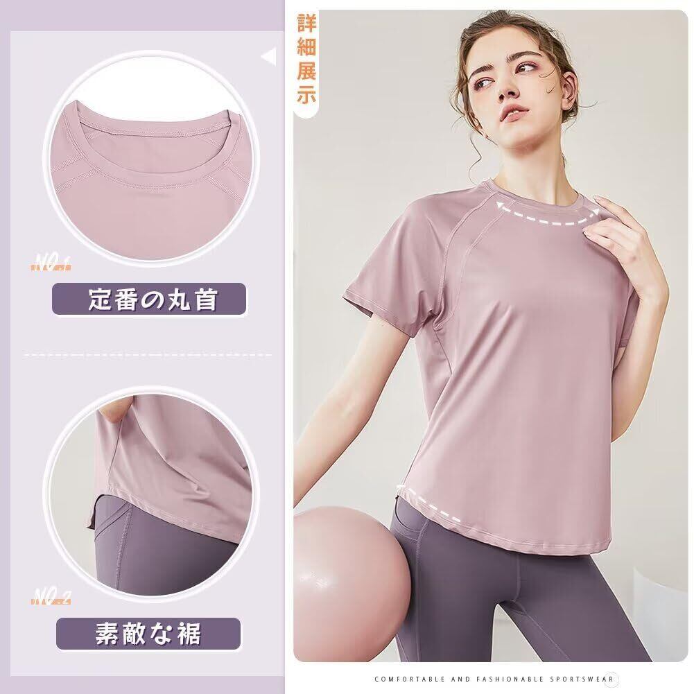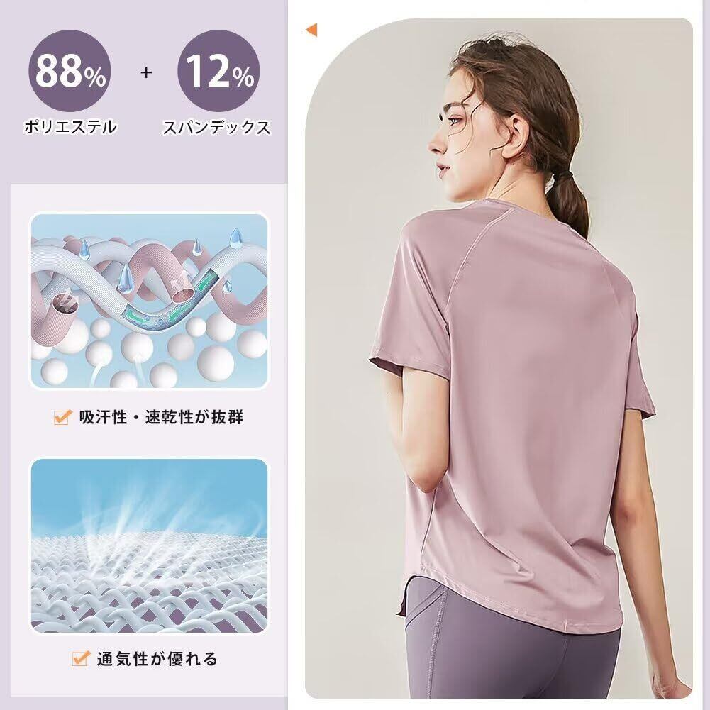 [Rovidorx] ヨガウェア トップス 半袖 tシャツ レディース スポーツ 大きいサイズ スポーツウェア ゆったり ピラティスウェア ジムウェア トレーニングウェア ランニングウェア 体形カバー UVカット 速乾
