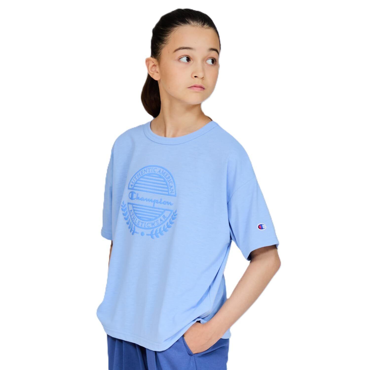 [Champion] 半袖Tシャツ キッズ 半袖 丸首 速乾 グラフィックロゴプリント ショートスリーブTシャツ スクールガールズ RelaxFit Binder Neck Gel Print CK-BS328 ガールズ